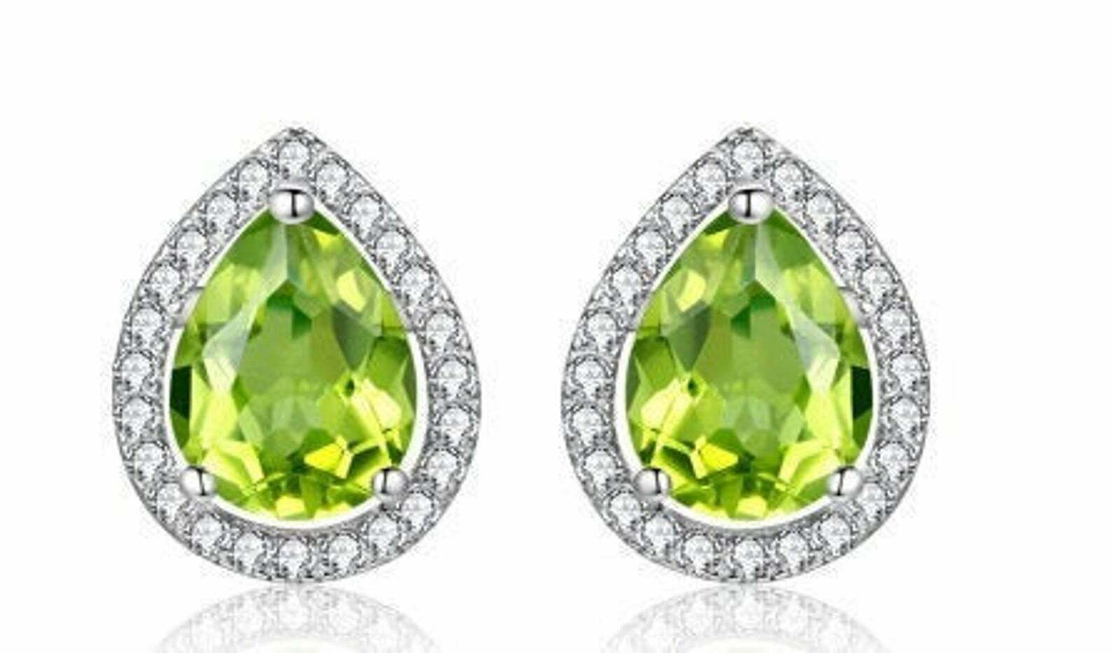 2.3ct Stud Earrings Pear Cut Green Peridot Diamond Halo 14k White Gold Finish