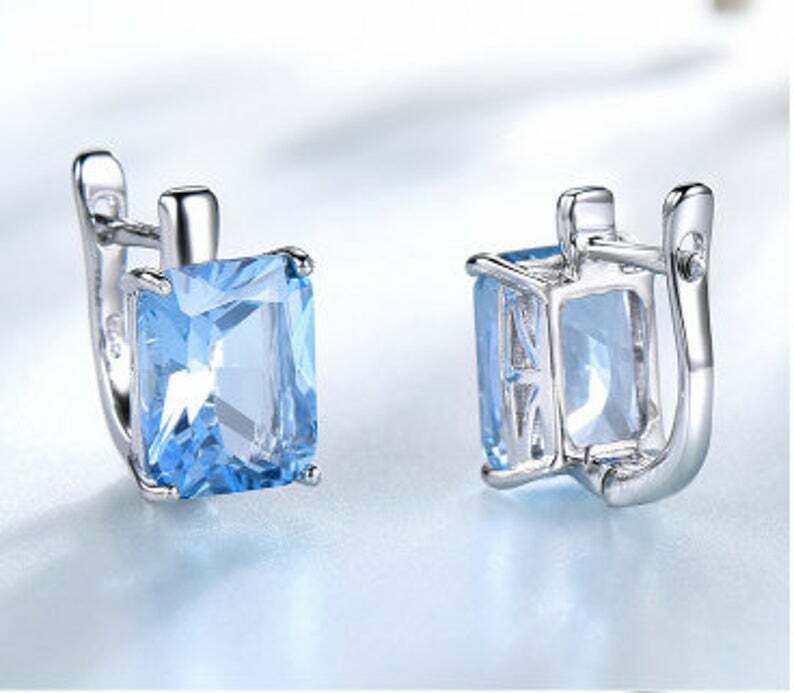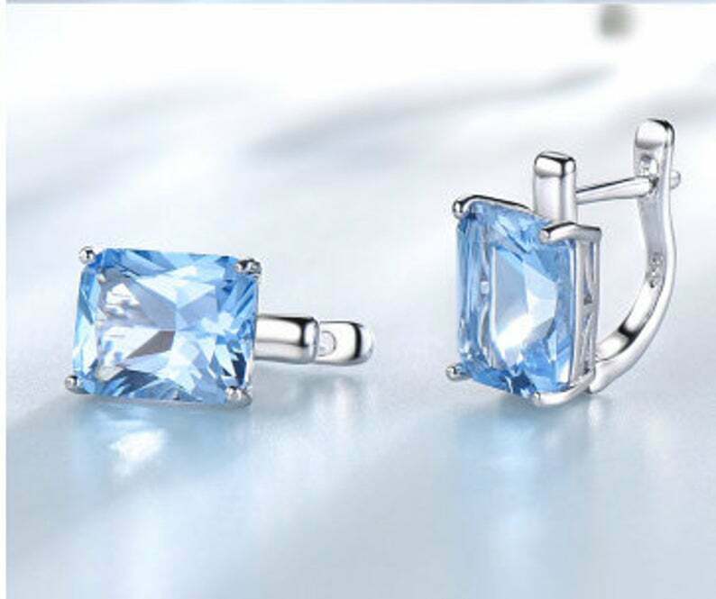 2.3ct Stud Earrings Radiant Cut Blue Topaz Solitaire Latch Back 14k White Gold Finish