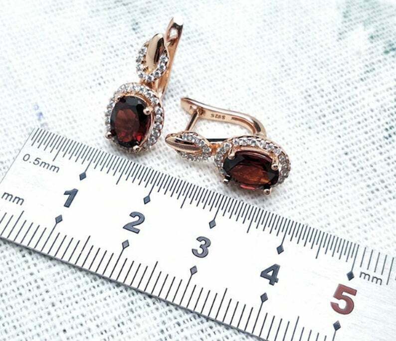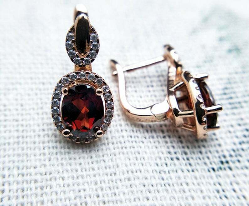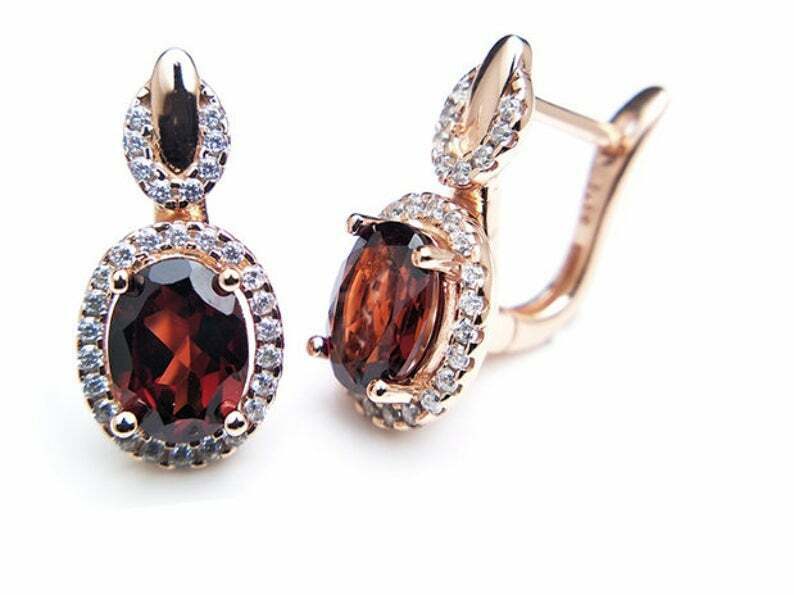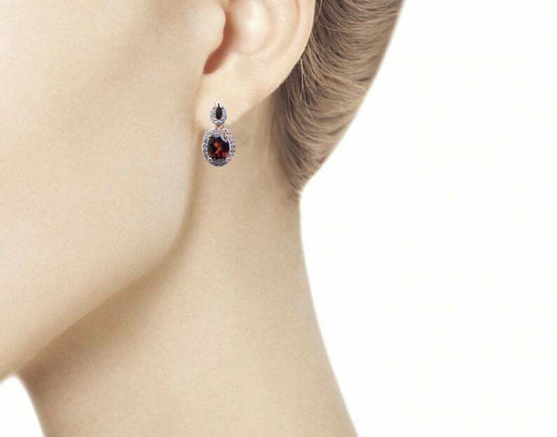 2.45ct Drop Earrings Oval Cut Red Garnet Stylish Halo 14k Yellow Gold Finish