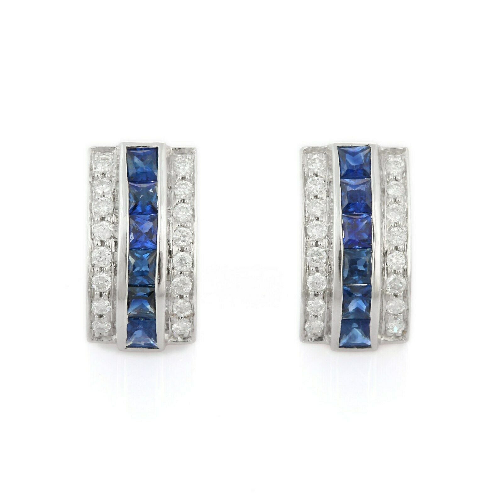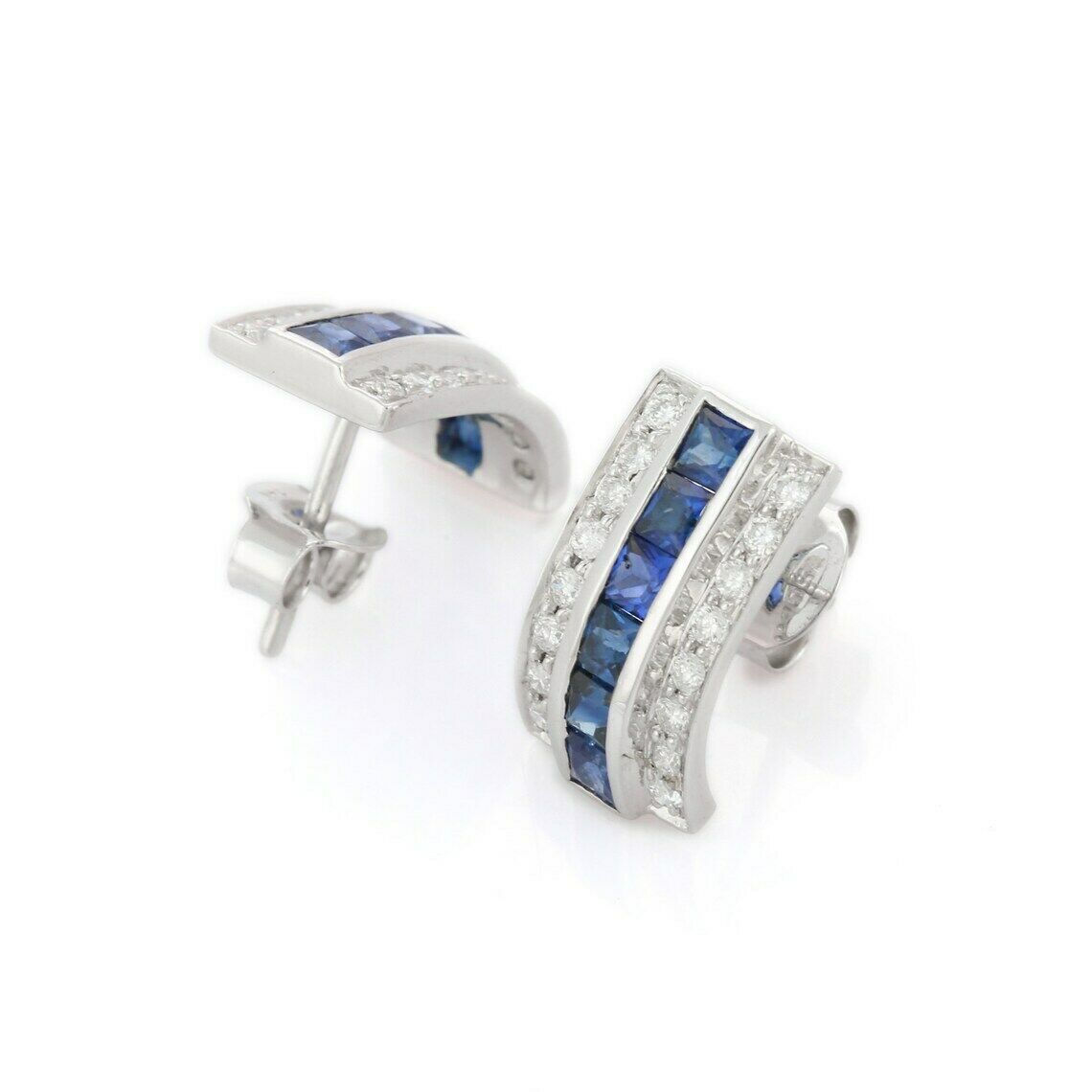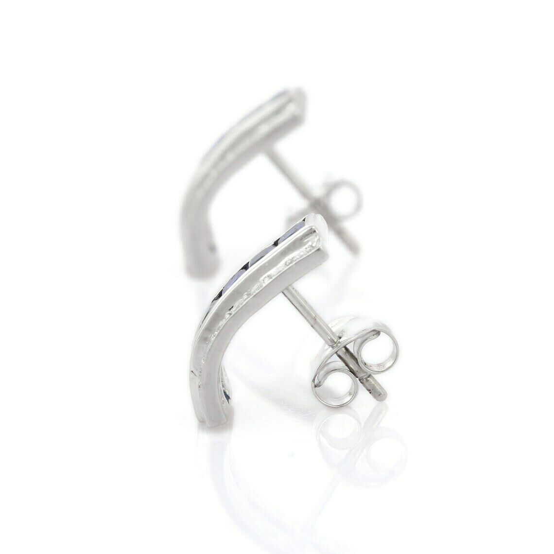 2.45ct Drop Earrings Princess Cut Blue Sapphire Channel Set 14k White Gold Finish