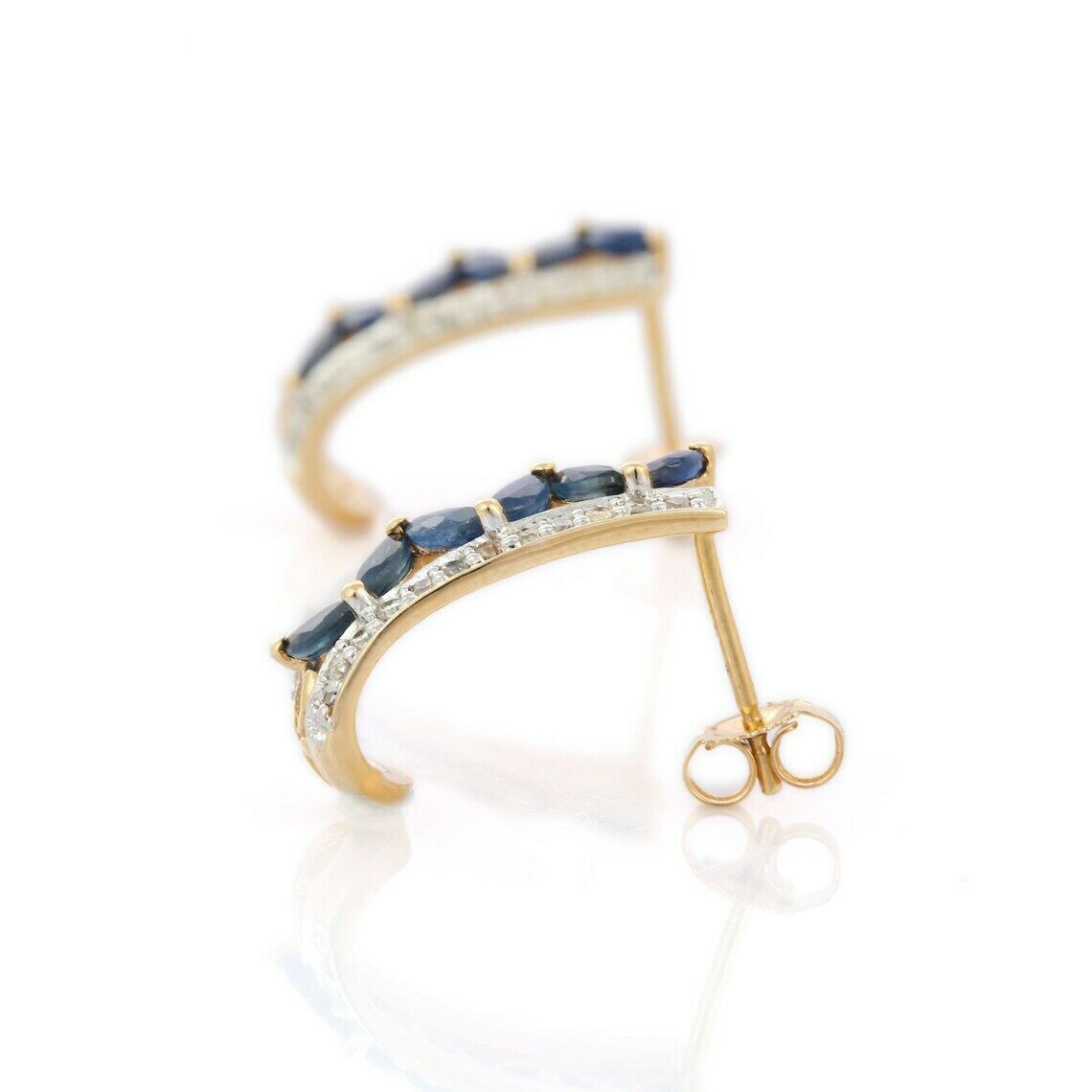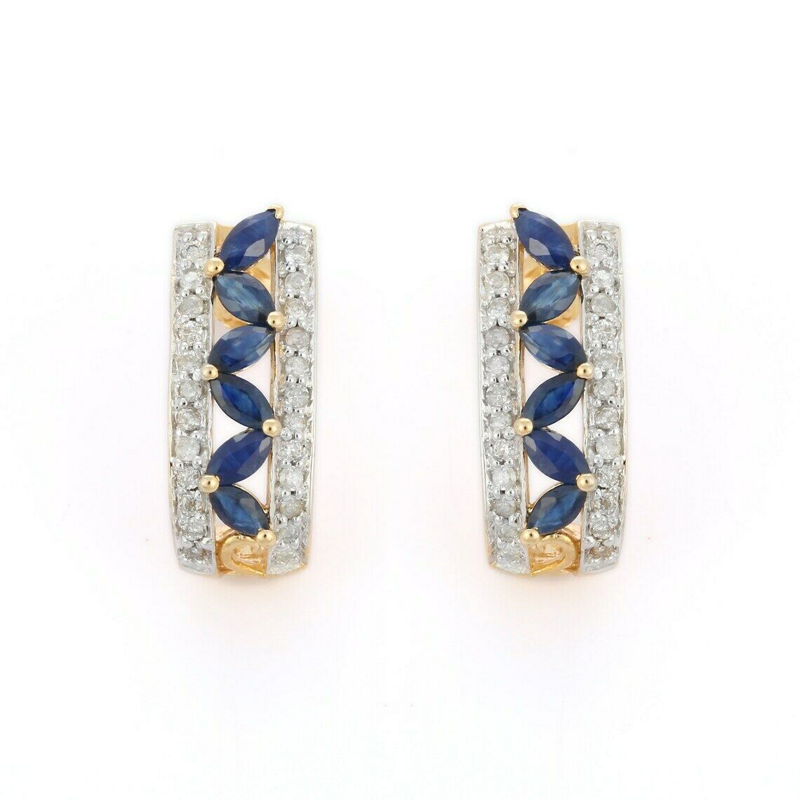2.4ct Drop Earrings Marquise Cut Blue Sapphire Cocktail Design 14k Dual Gold Finish