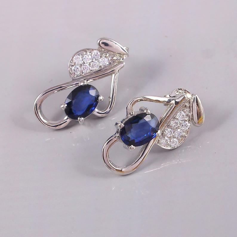 2.4ct Drop Earrings Oval Cut Blue Sapphire Floral 14k White Gold Finish