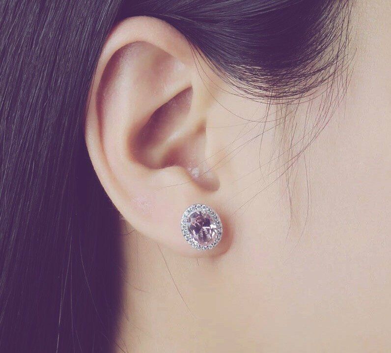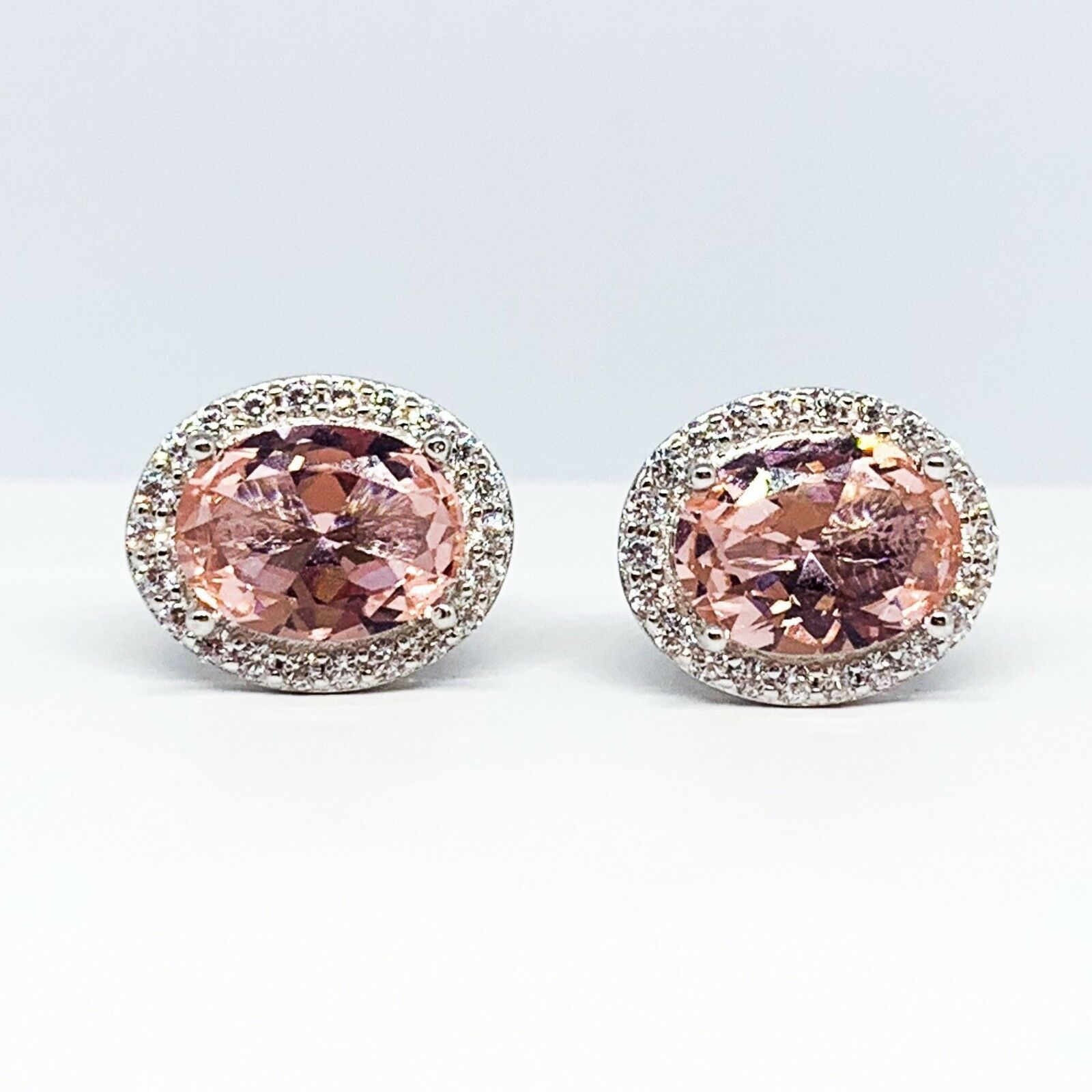 2.4Ct Oval Cut Peach Morganite Diamond Halo Stud Earring 18K White Gold Finish