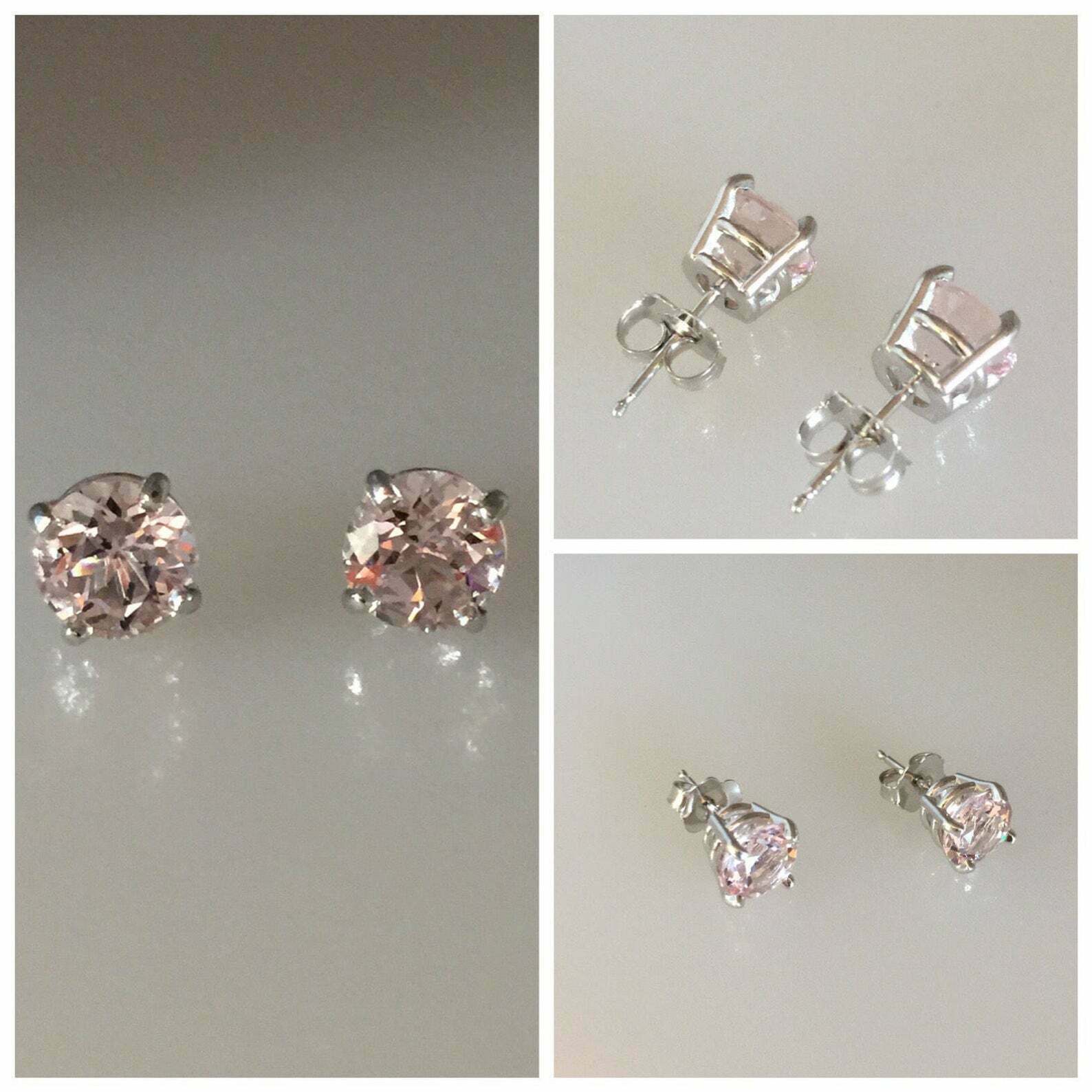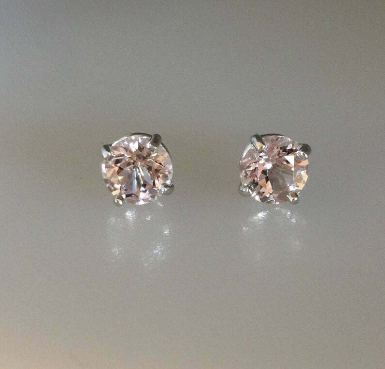 2.4ct Round Cut Morganite Classic Solitaire Stud Earrings 14k White Gold Finish