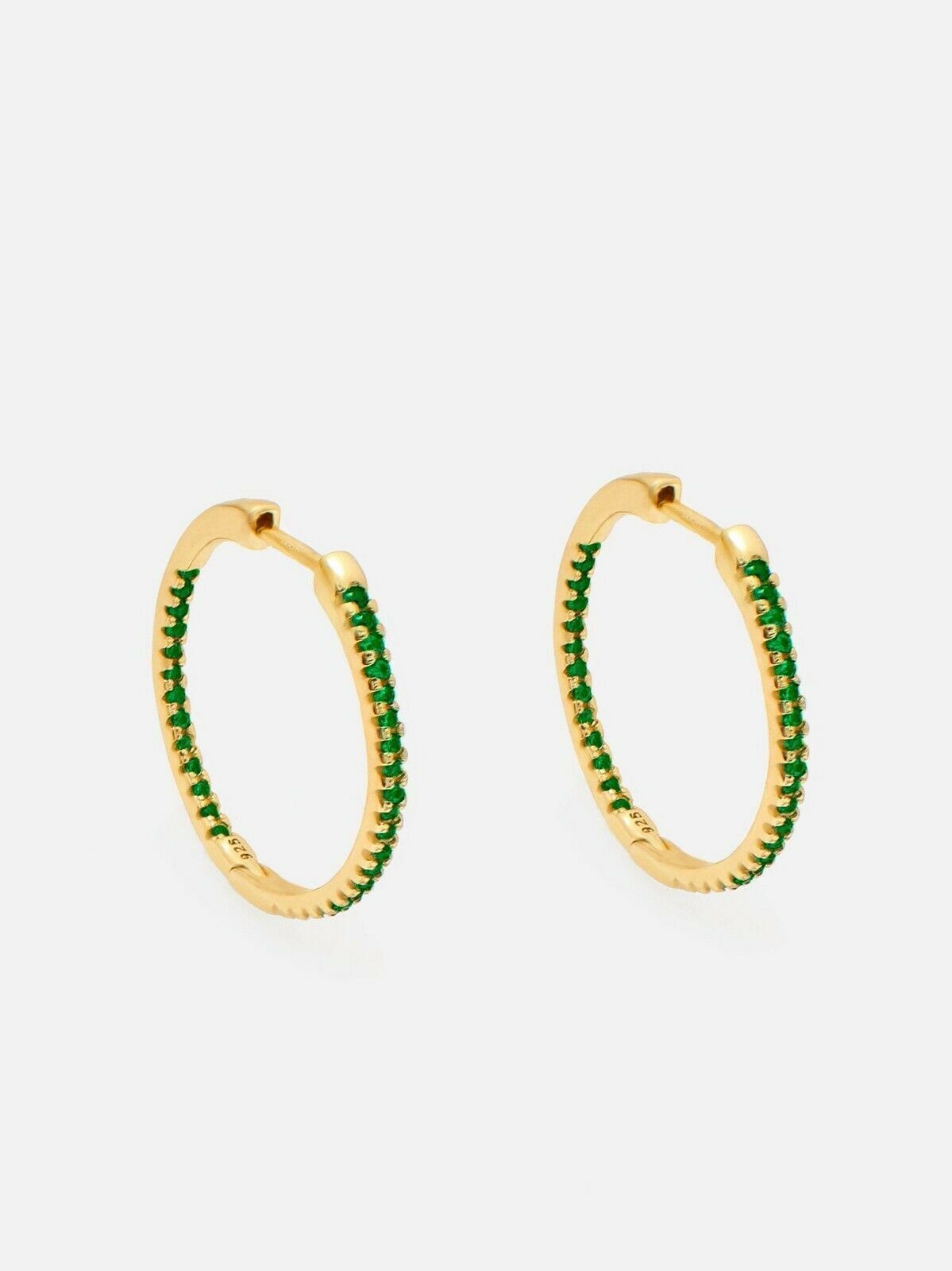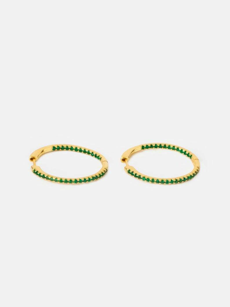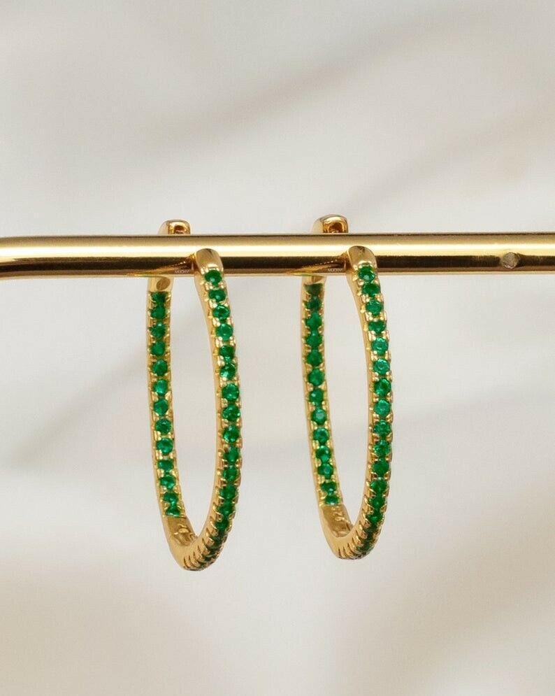 2.4ct Round Green Emerald Inside Out Style Hoop Earrings 14k Yellow Gold Finish