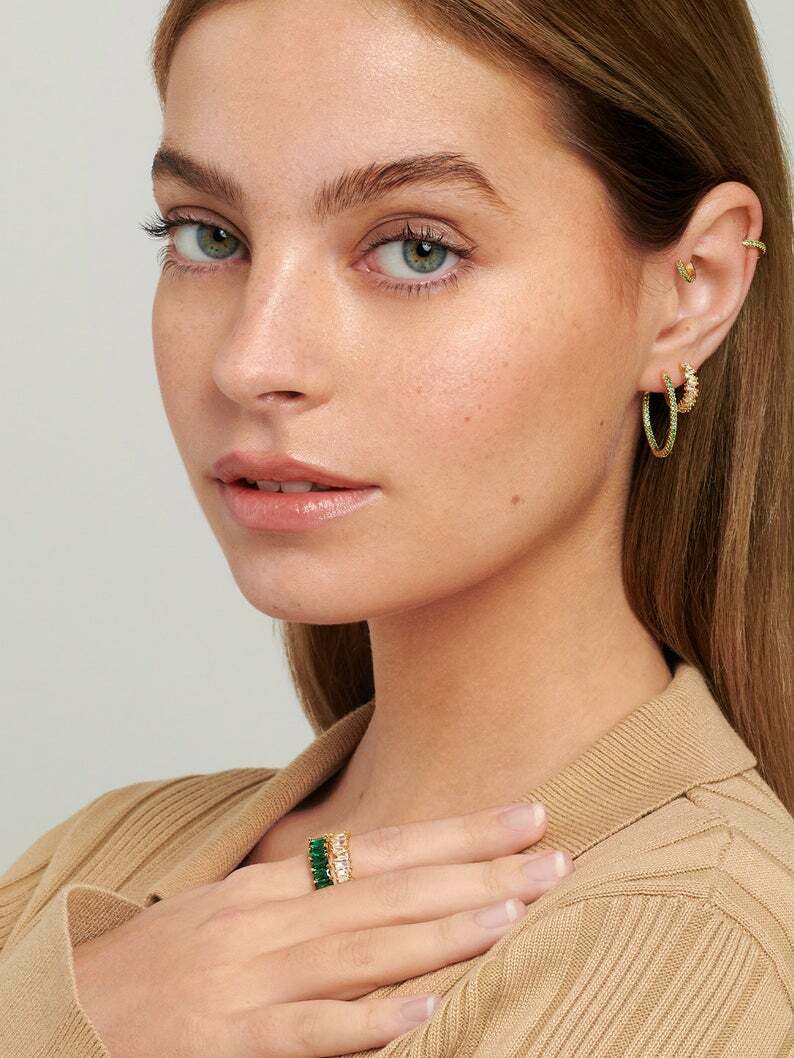 2.4ct Round Cut Green Emerald Inside Out Style Hoop Earrings 14k Yellow Gold Finish