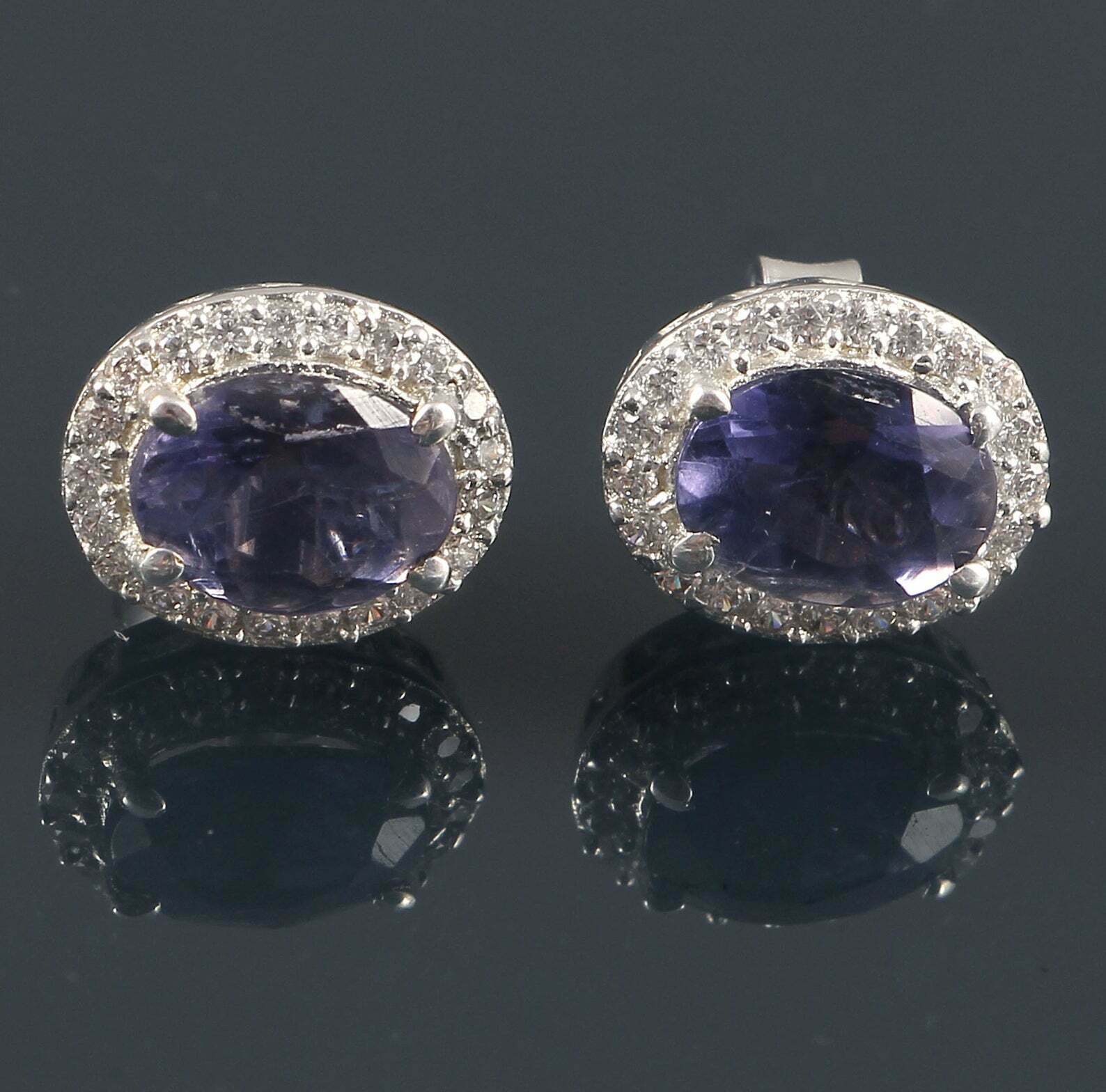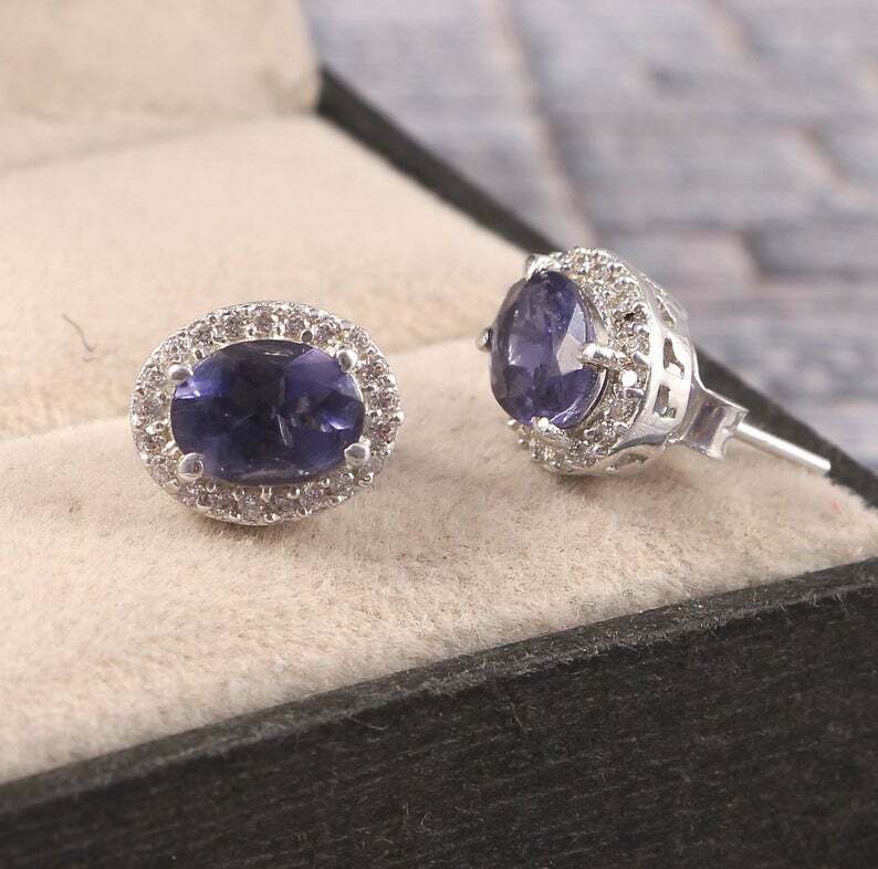 2.4ct Stud Earrings Oval Cut Blue Tanzanite Diamond Halo 14k White Gold Finish