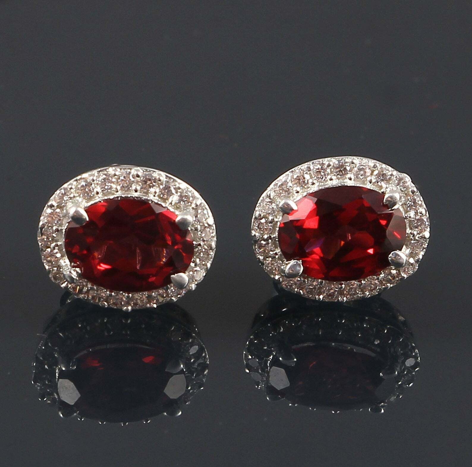 2.4ct Stud Earrings Oval Cut Red Garnet Diamond Halo Women 14k White Gold Finish