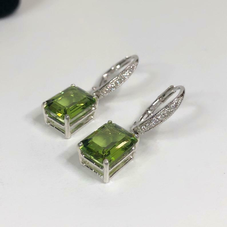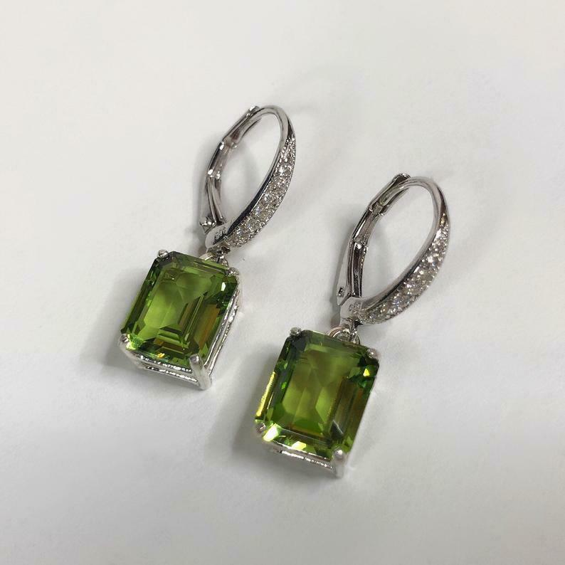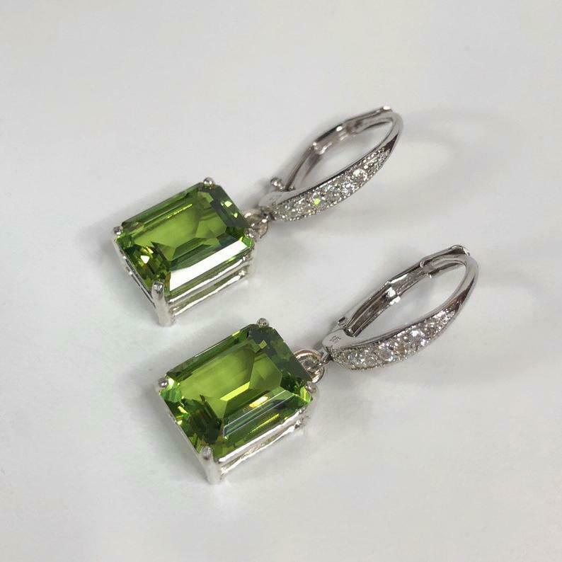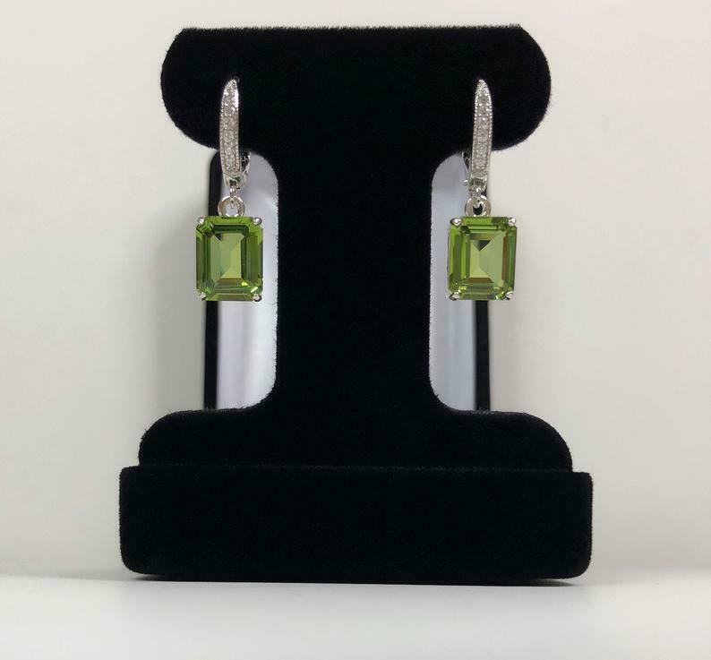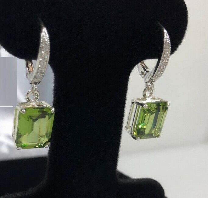 2.5ct Dangle Earrings Emerald Cut Green Peridot LeverBack 14k White Gold Finish