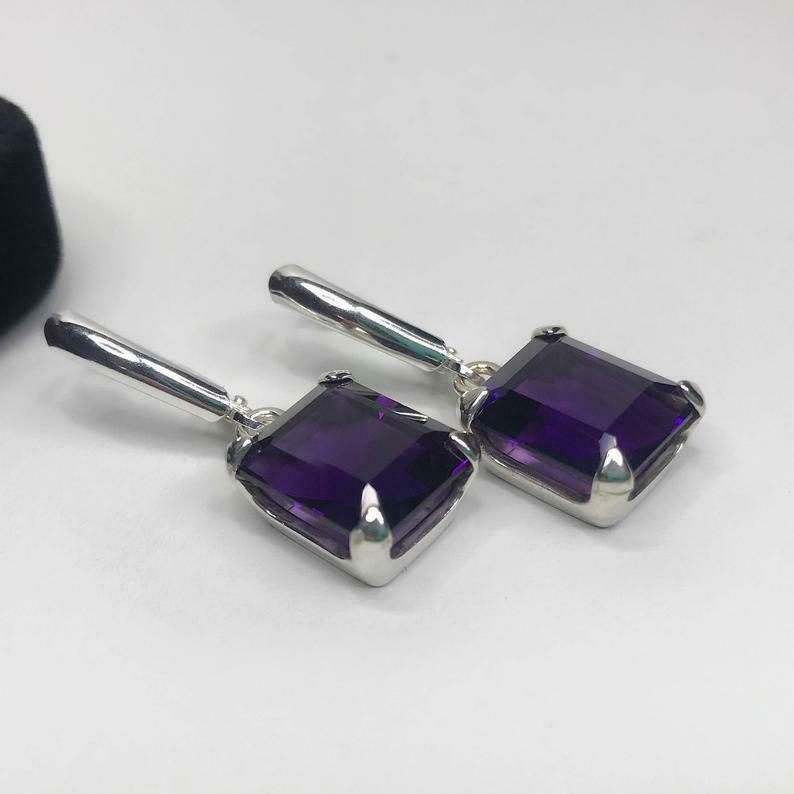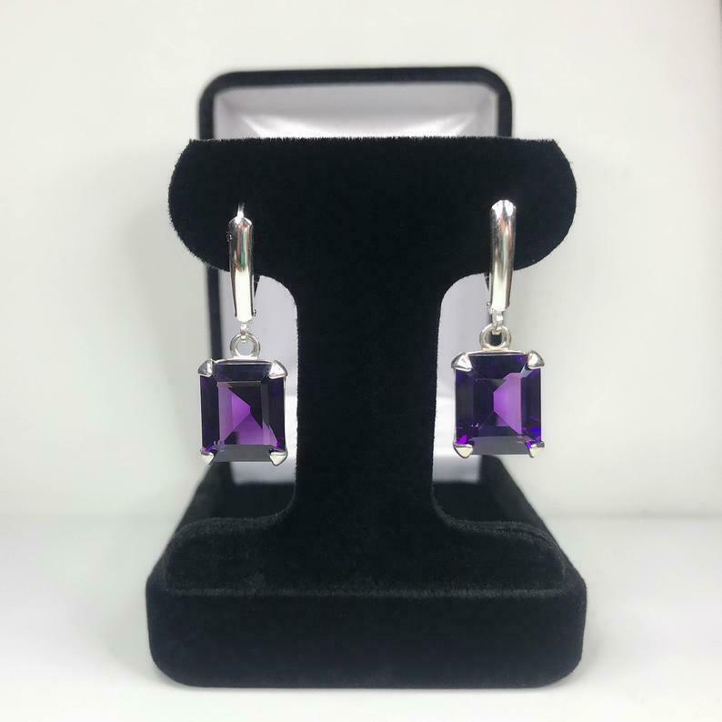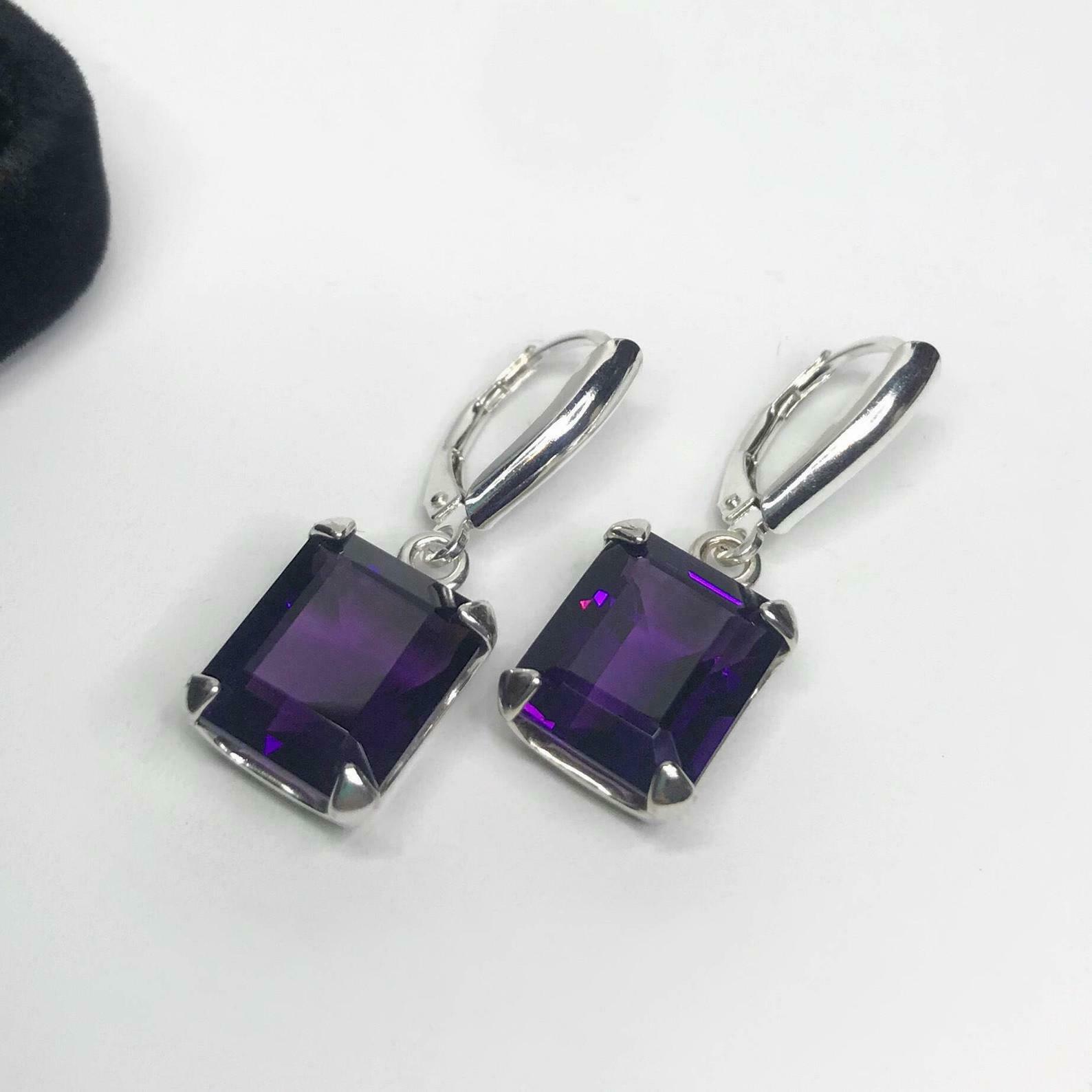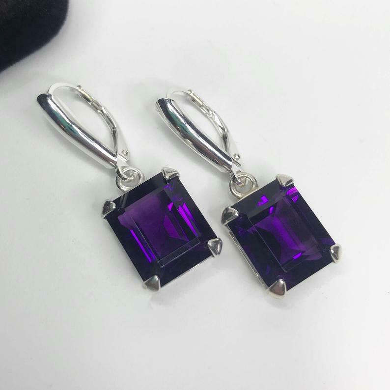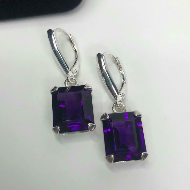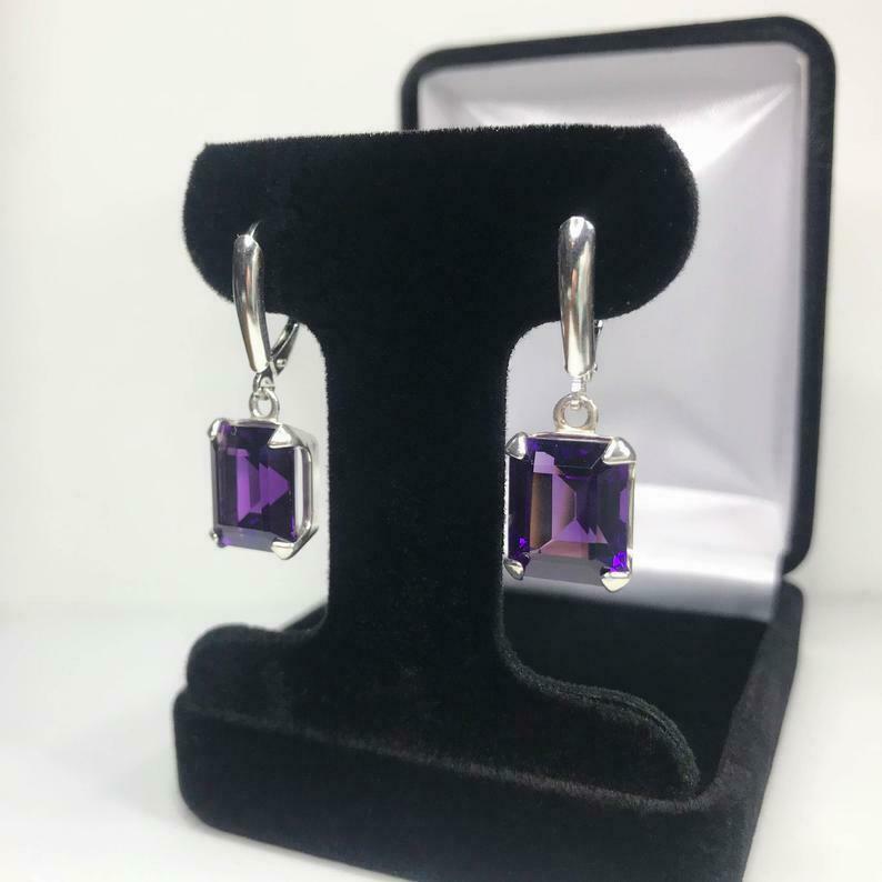2.5ct Dangle Earrings Emerald Cut Purple Amethyst LeverBack 14k White Gold Over
