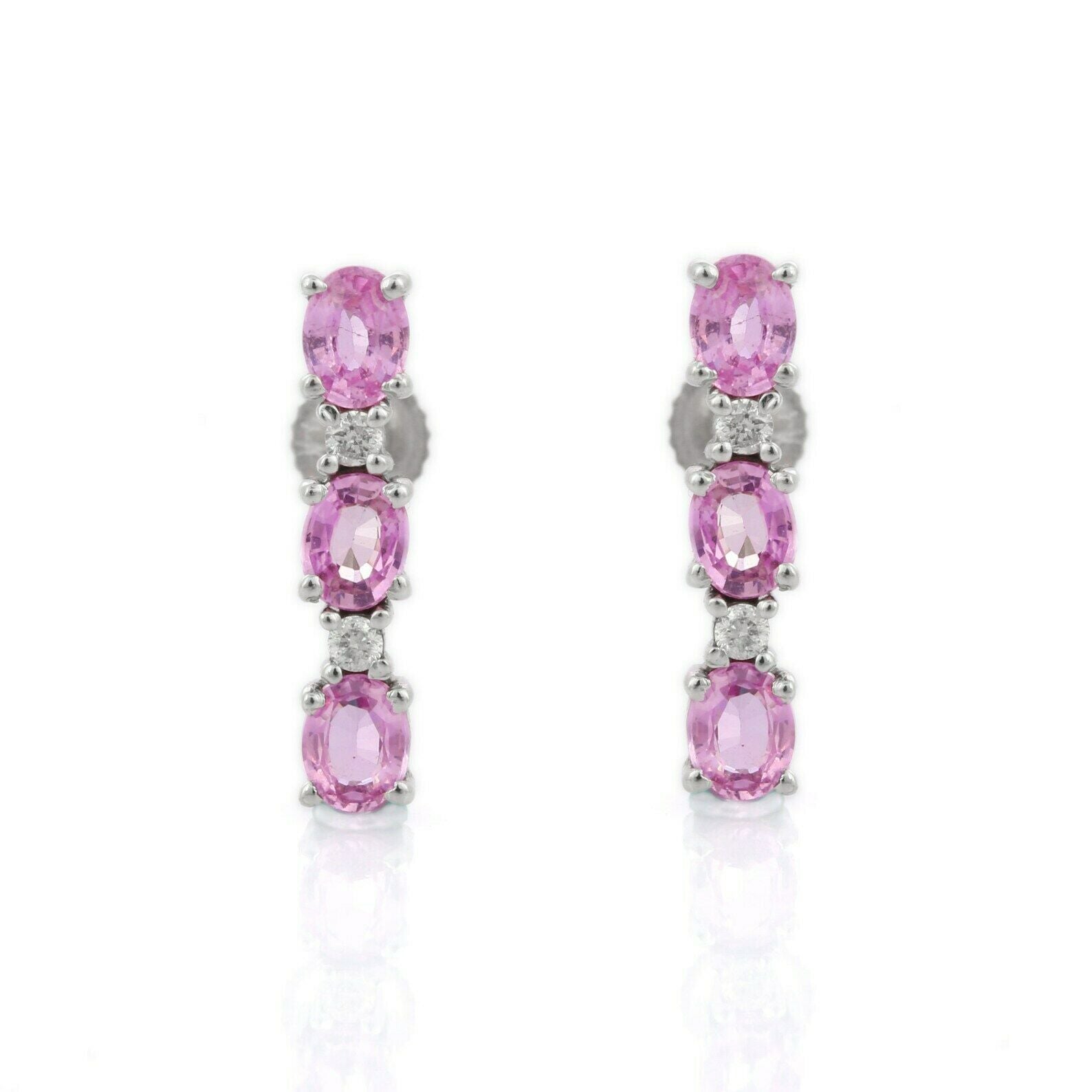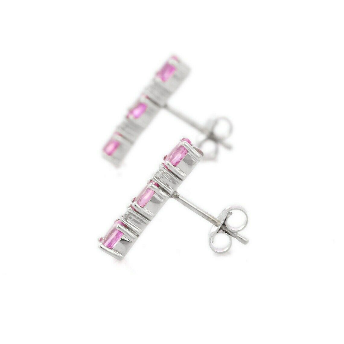 2.5ct Dangle Earrings Oval Cut Pink Sapphire Vertical Bar 14k White Gold Finish