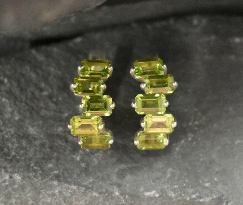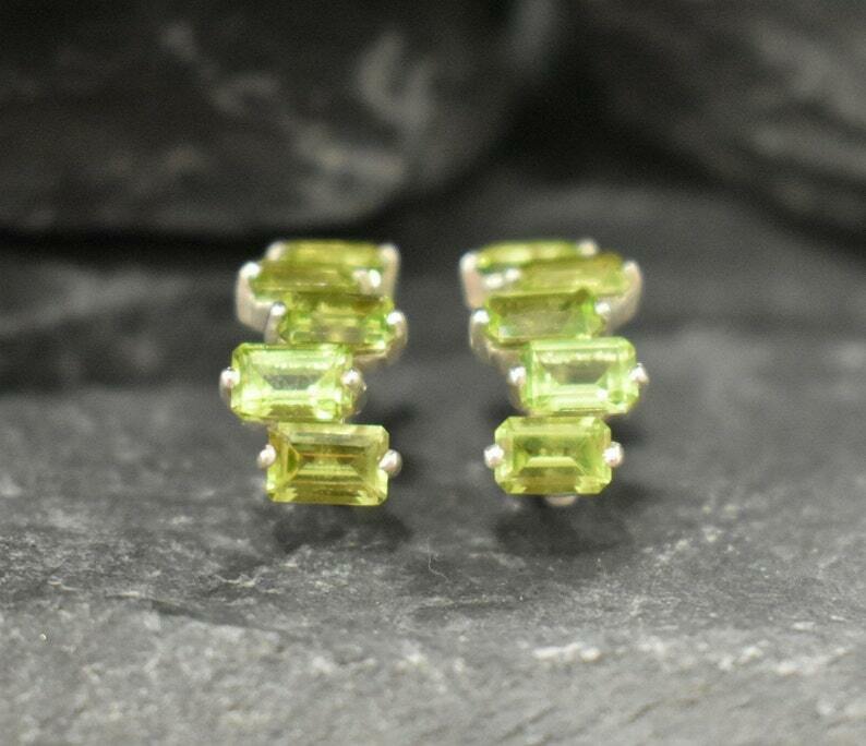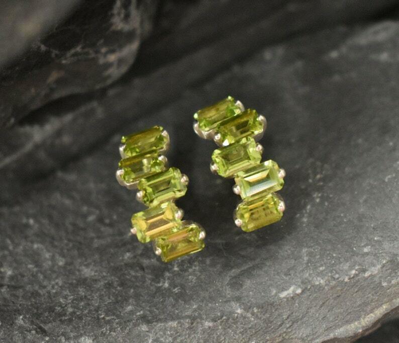 2.5ct Drop Earrings Emerald Cut Green Peridot Geometric Bar 14k WhiteGold Finish