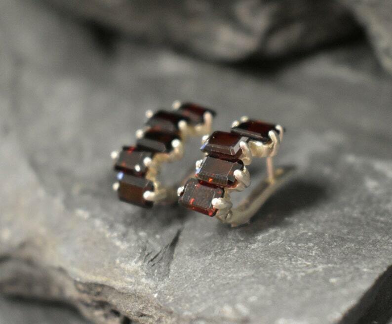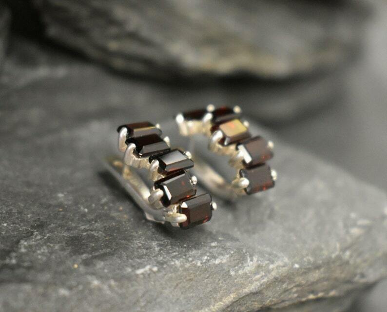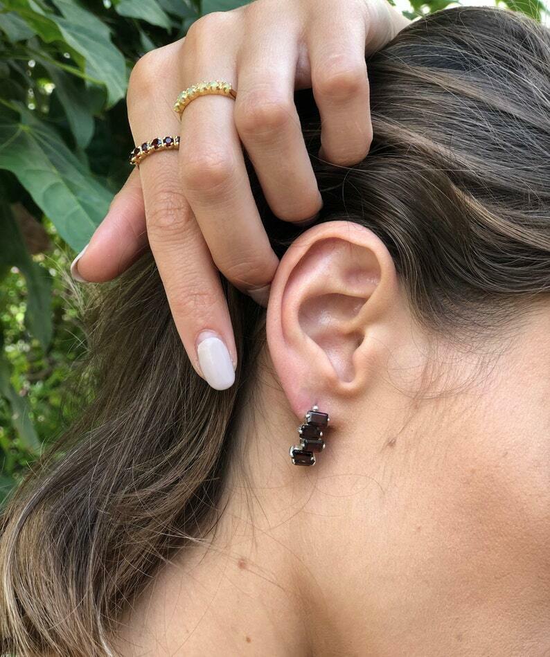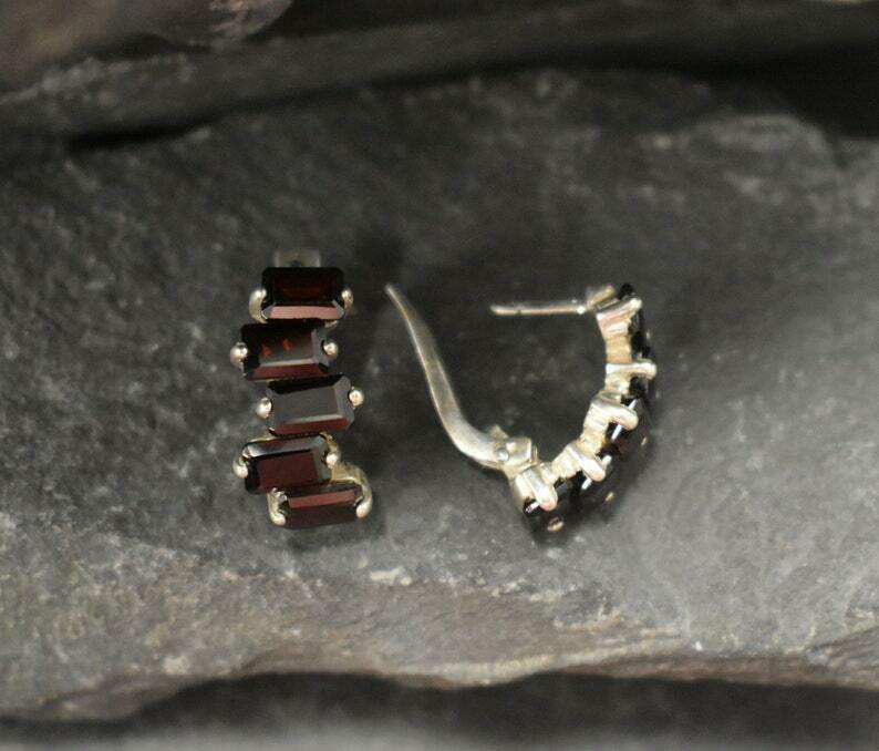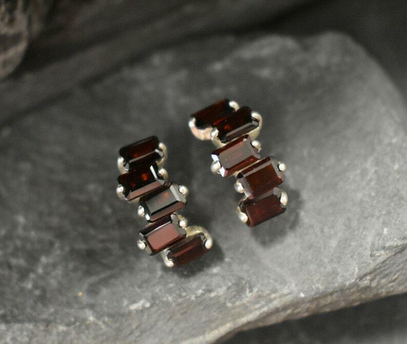 2.5ct Drop Earrings Emerald Cut Red Garnet Geometric Bar 14k White Gold Finish