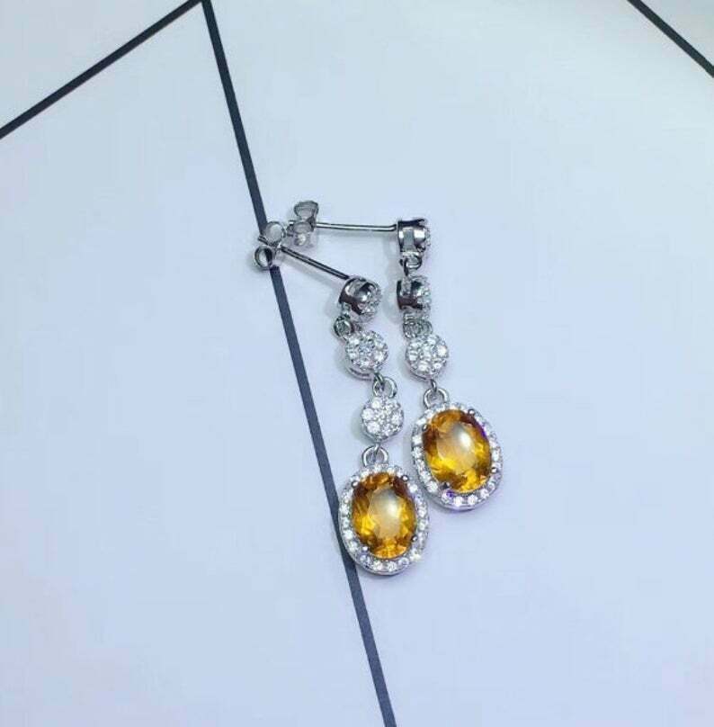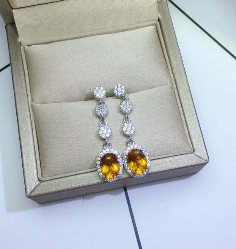 2.5ct Drop Earrings Oval Cut Yellow Citrine Dangle Halo 14k White Gold Finish
