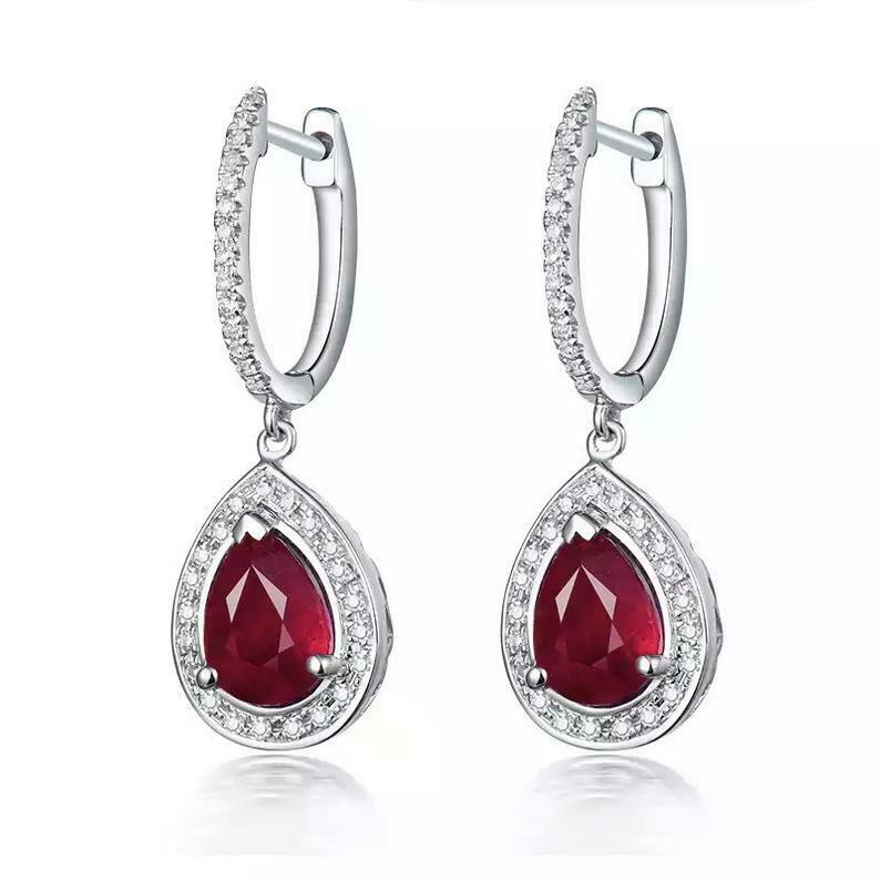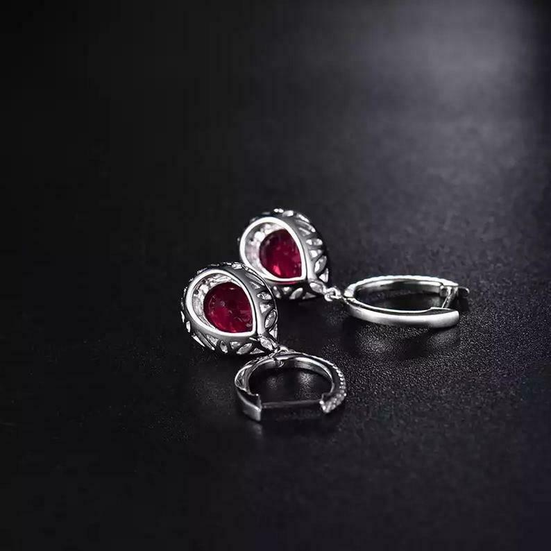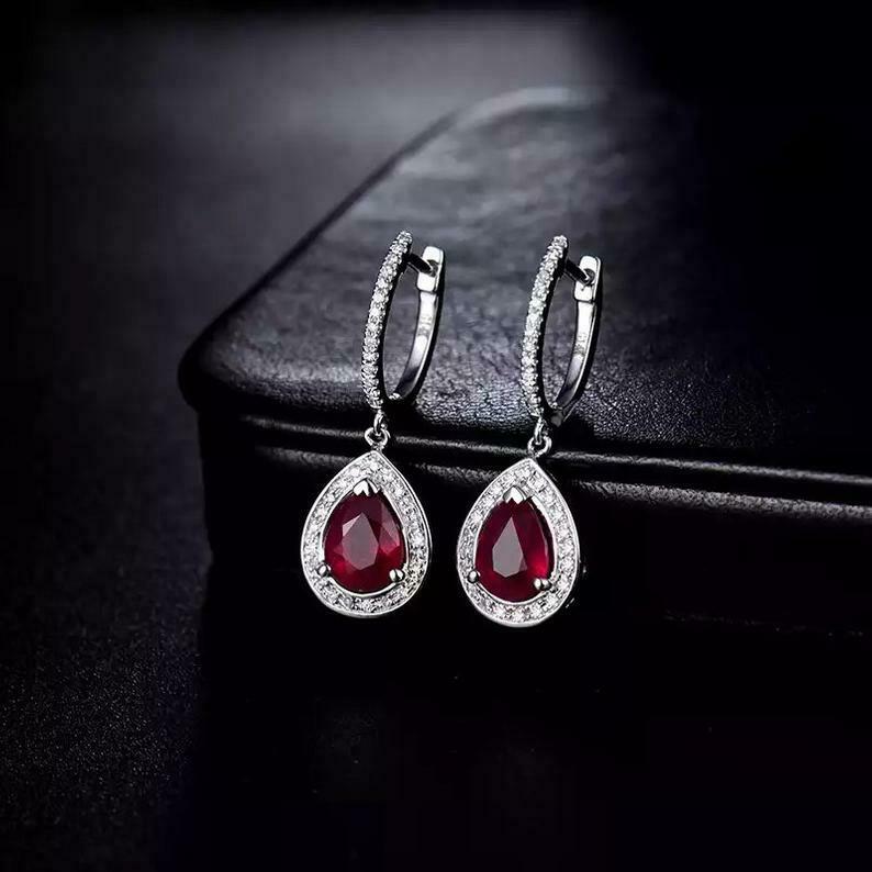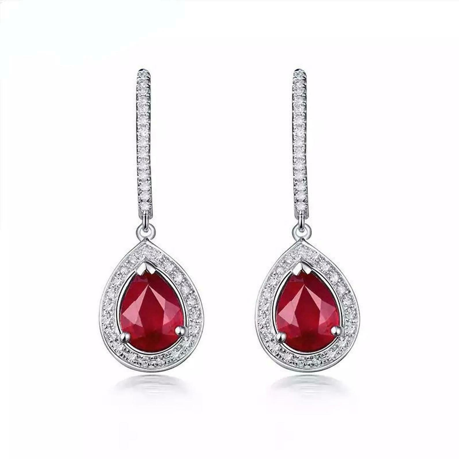 2.5ct Drop Earrings Pear Cut Pink Ruby Diamond Halo Design 14k White Gold Finish