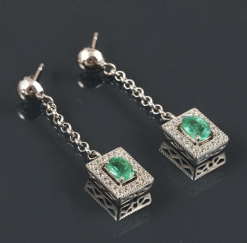 2.5ct Oval Cut Green Emerald Dangling Halo Drop Earrings 14k White Gold Finish