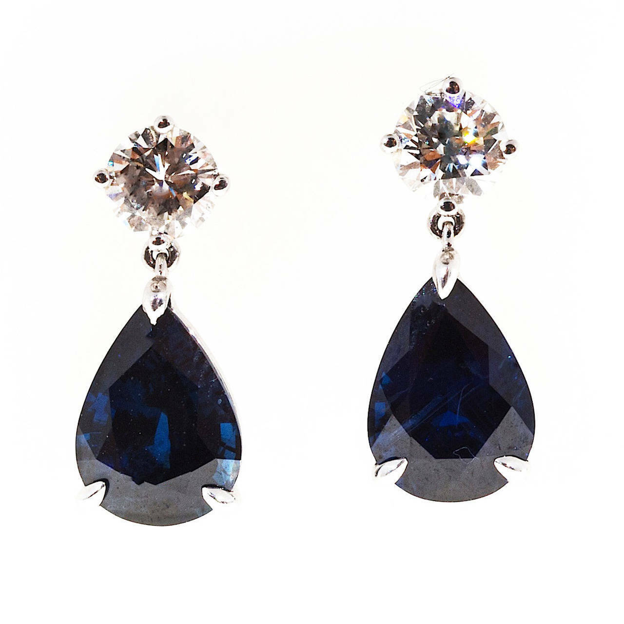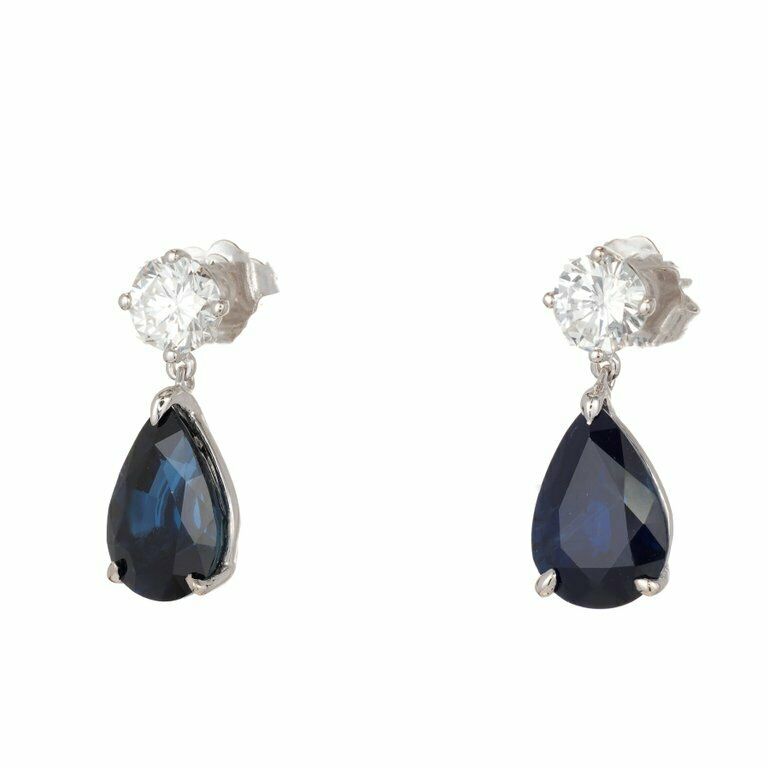2.5ct Pear Cut Blue Sapphire Tear Drop Earrings 14k White Gold Finish