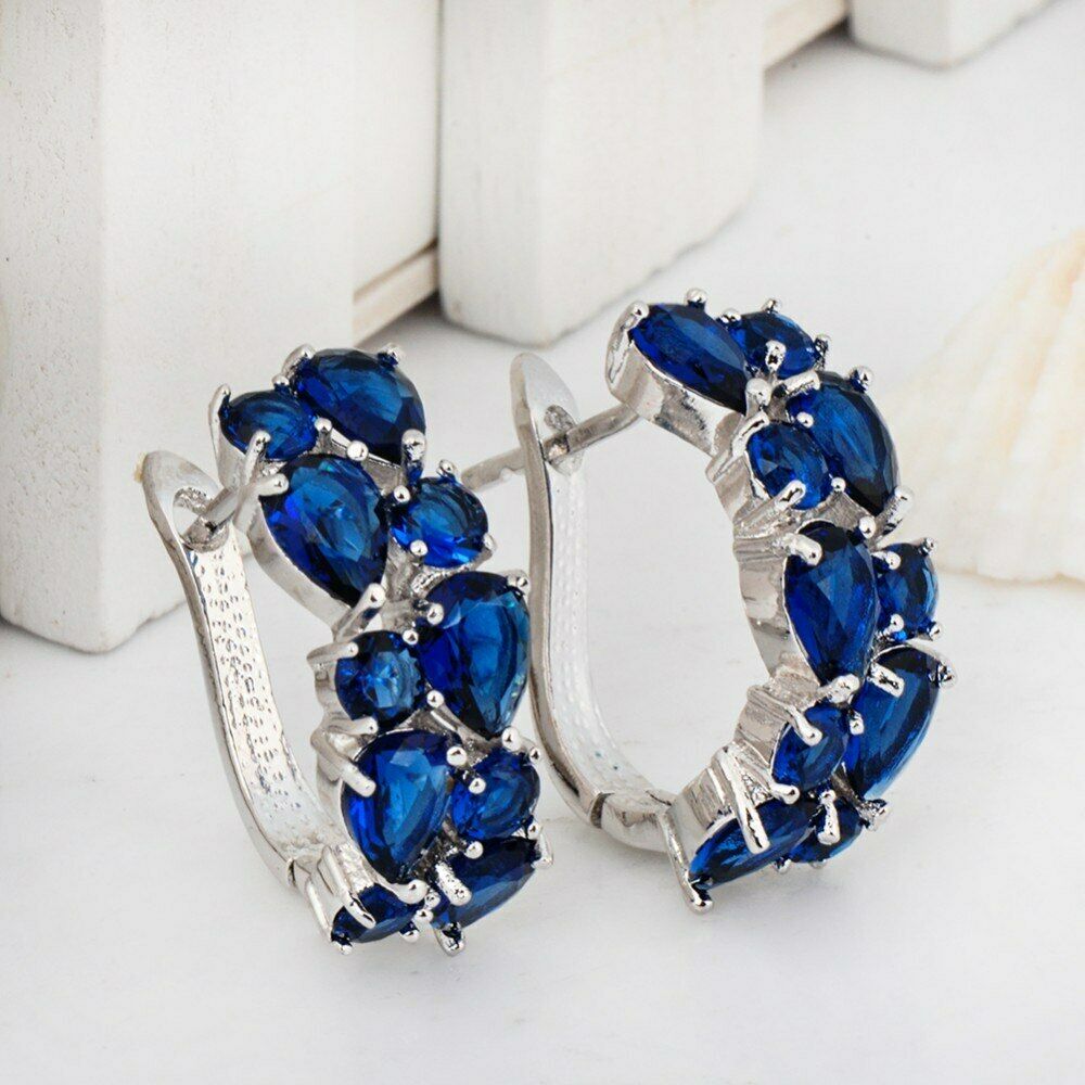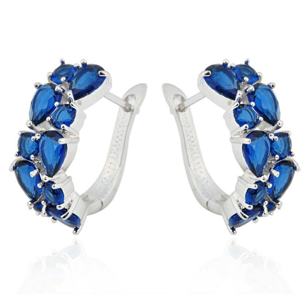 2.5ct Pear Cut Blue Sapphire Vintage Wedding Hoop Earrings 14k White Gold Finish