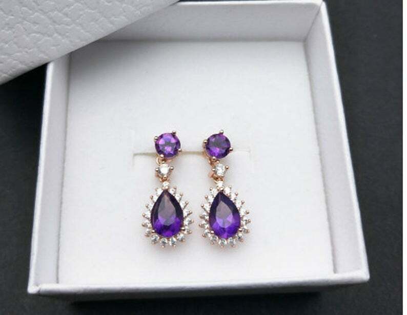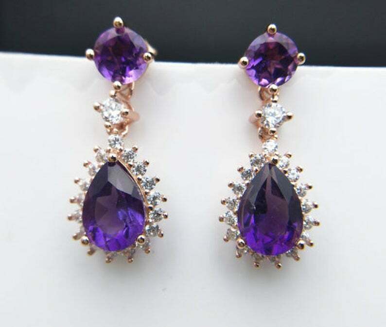 2.5ct Pear Cut Purple Amethyst Dangling Tear Drop Earrings 14k Rose Gold Finish