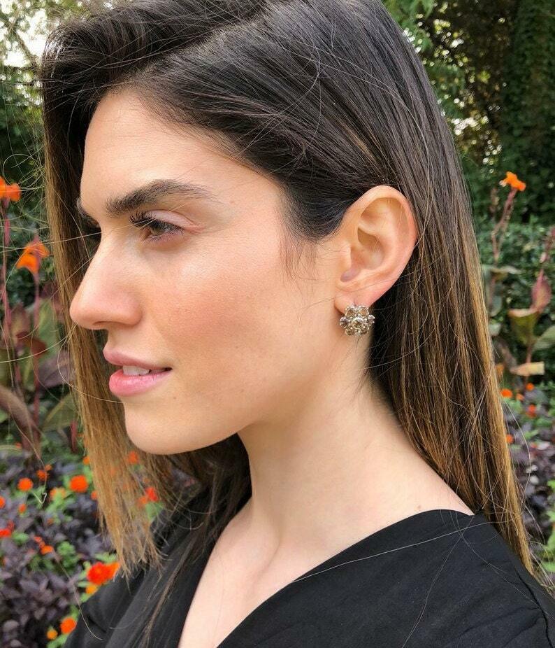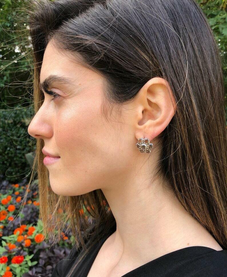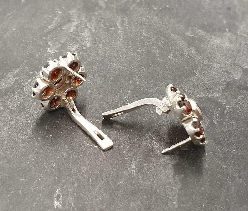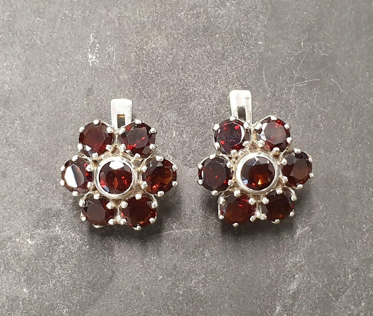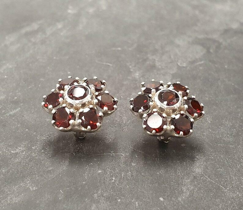 2.5ct Stud Earrings Round Cut Red Garnet Floral Cluster 14k White Gold Finish