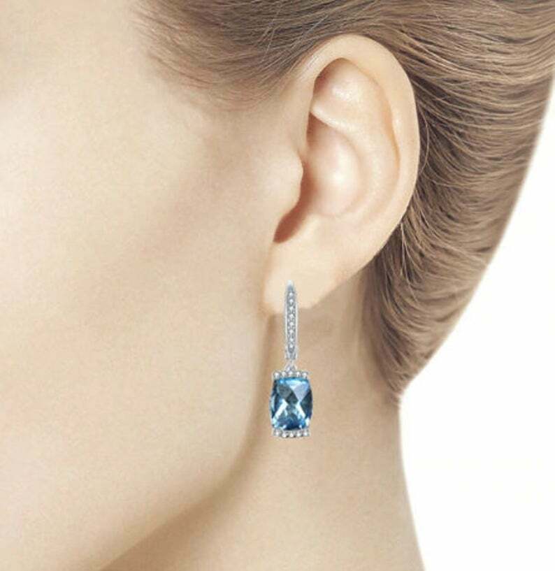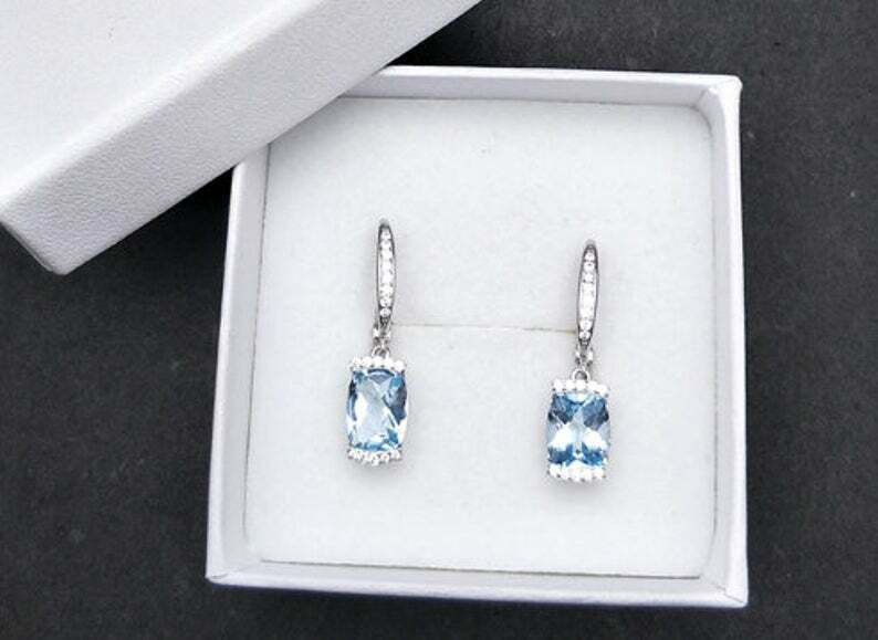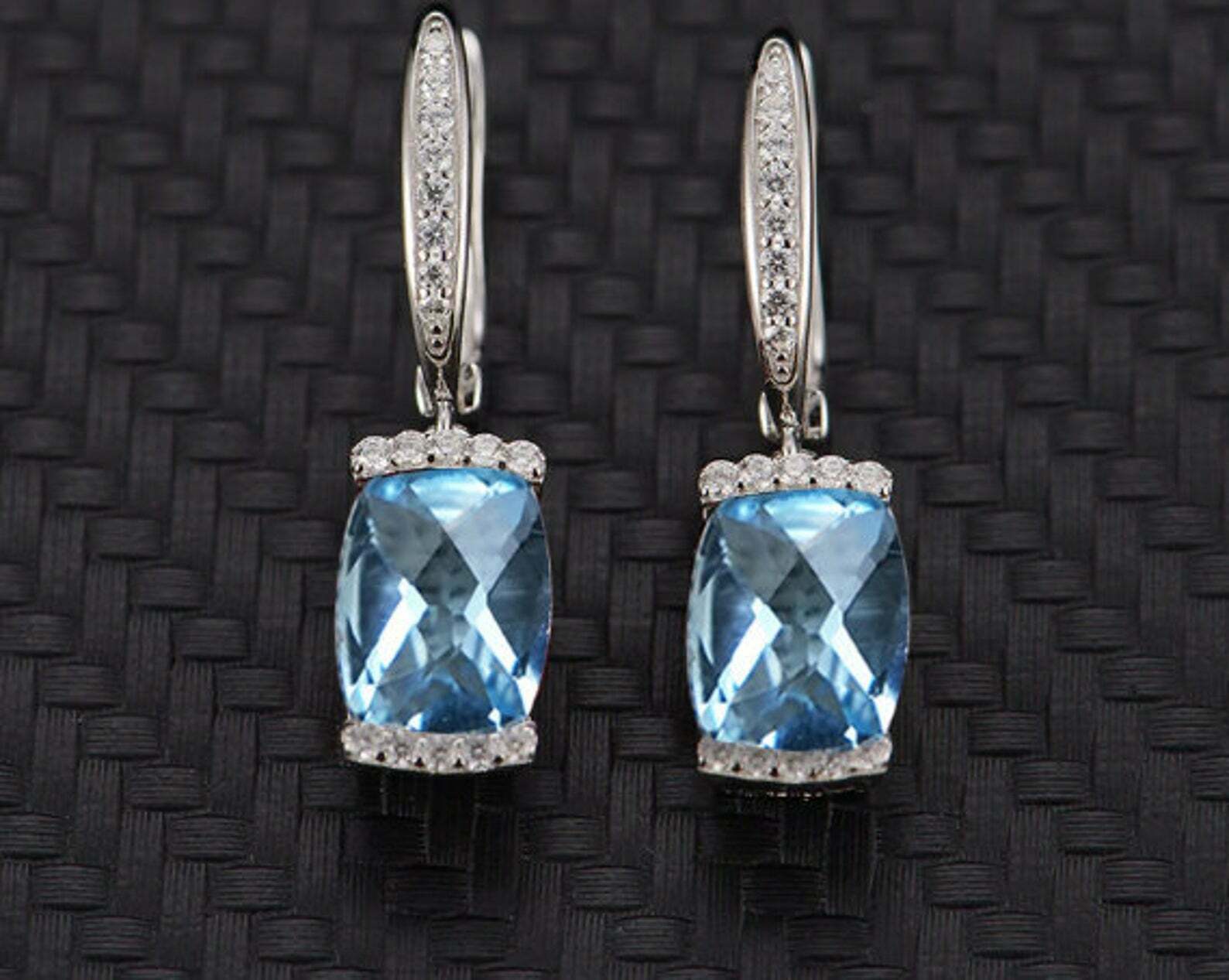 2.6ct Drop Earrings Cushion Cut Blue Topaz Partywearr 14k White Gold Finish