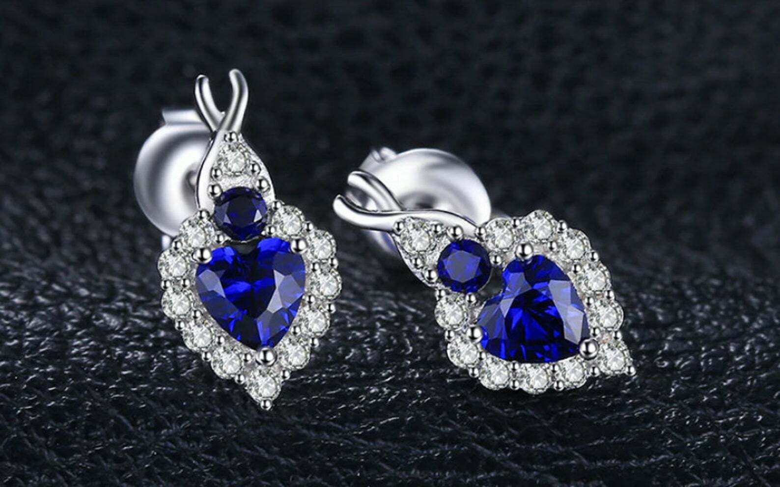 2.6ct Drop Earrings Heart Cut Blue Sapphire Diamond Halo 14k White Gold Finish
