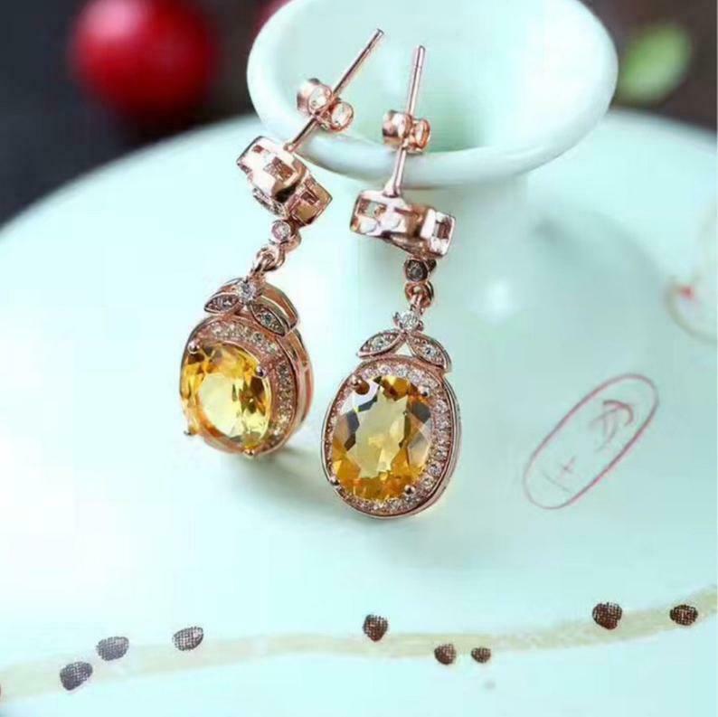 2.6ct Drop Earrings Oval Cut Yellow Citrine Floral Halo 14k Rose Gold Finish