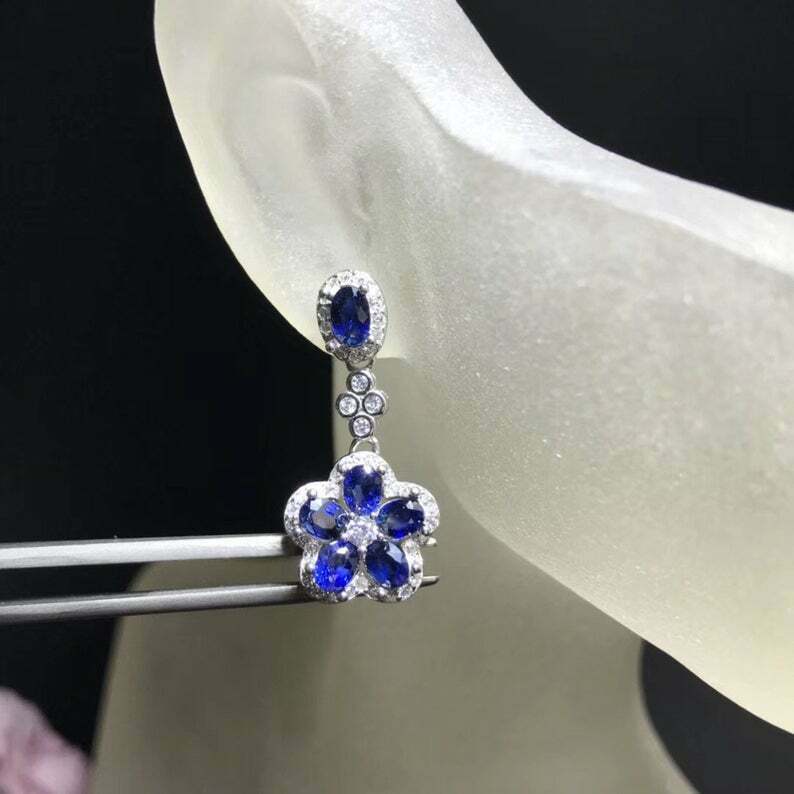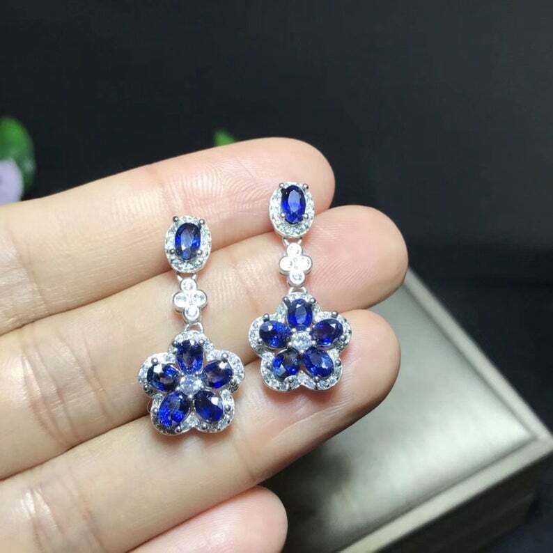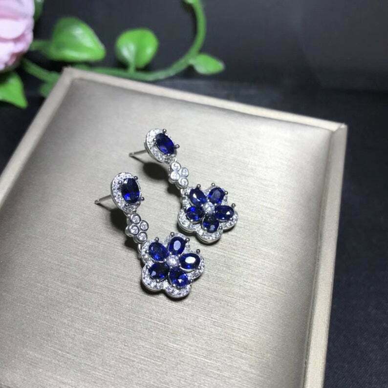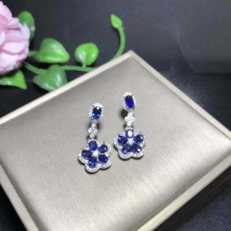 2.6ct Oval Cut Blue Sapphire Diamond Floral Drop Earrings 14k White Gold Finish