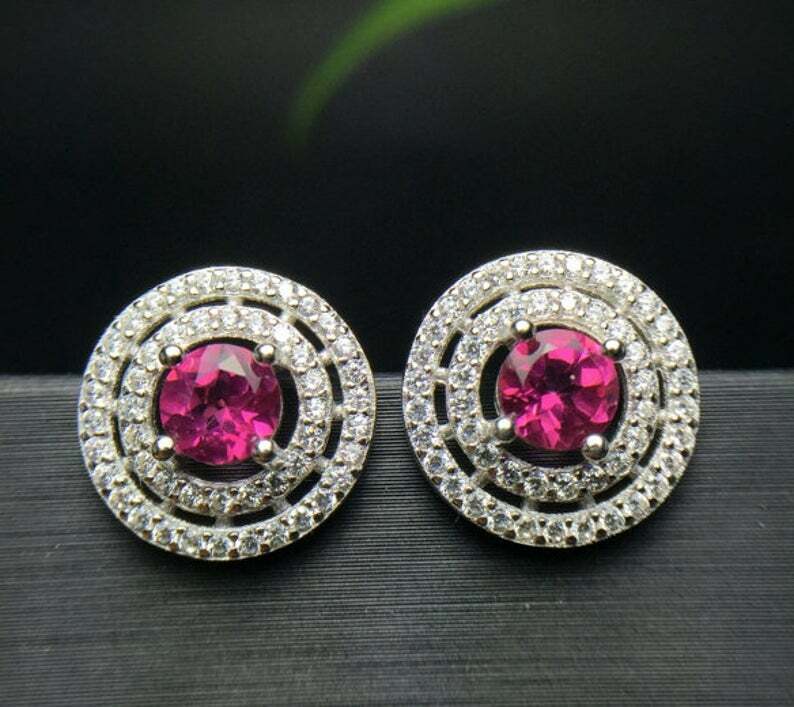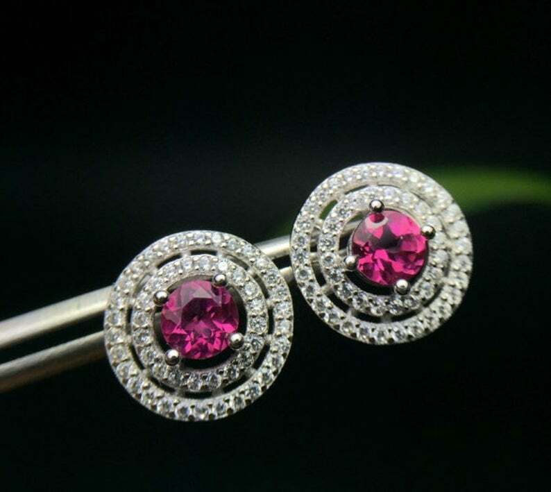 2.75ct Stud Earrings Round Cut Pink Ruby Diamond Dual Halo 14k White Gold Finish