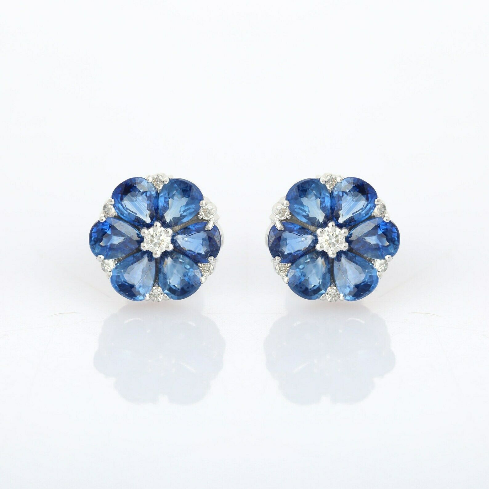 2.7ct Stud Earrings Pear Cut Blue Sapphire Floral 14k White Gold Finish