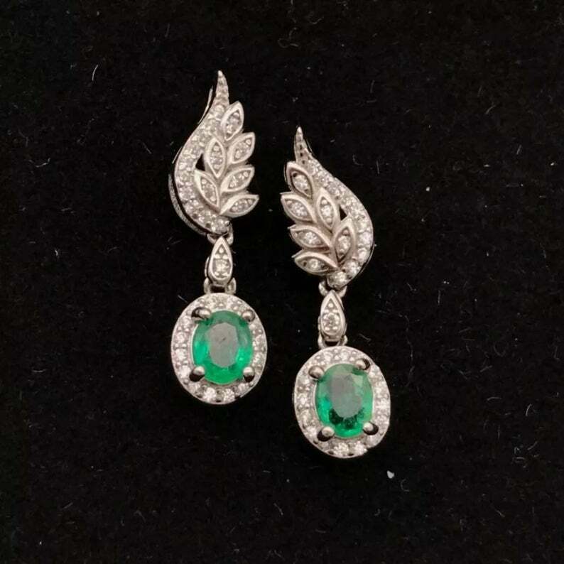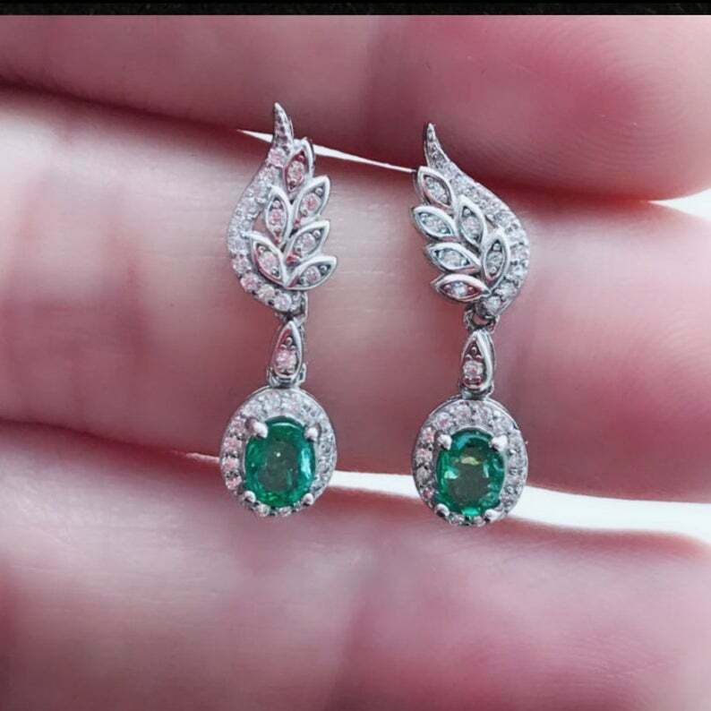 2.8ct Drop Earrings Oval Cut Green Emerald Dangle Leaf 14k White Gold Finish