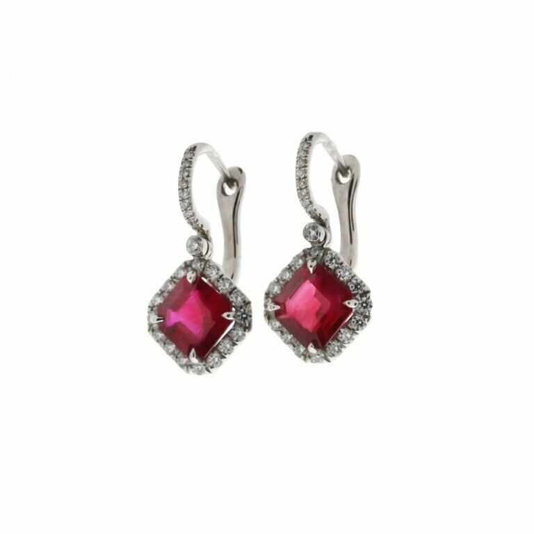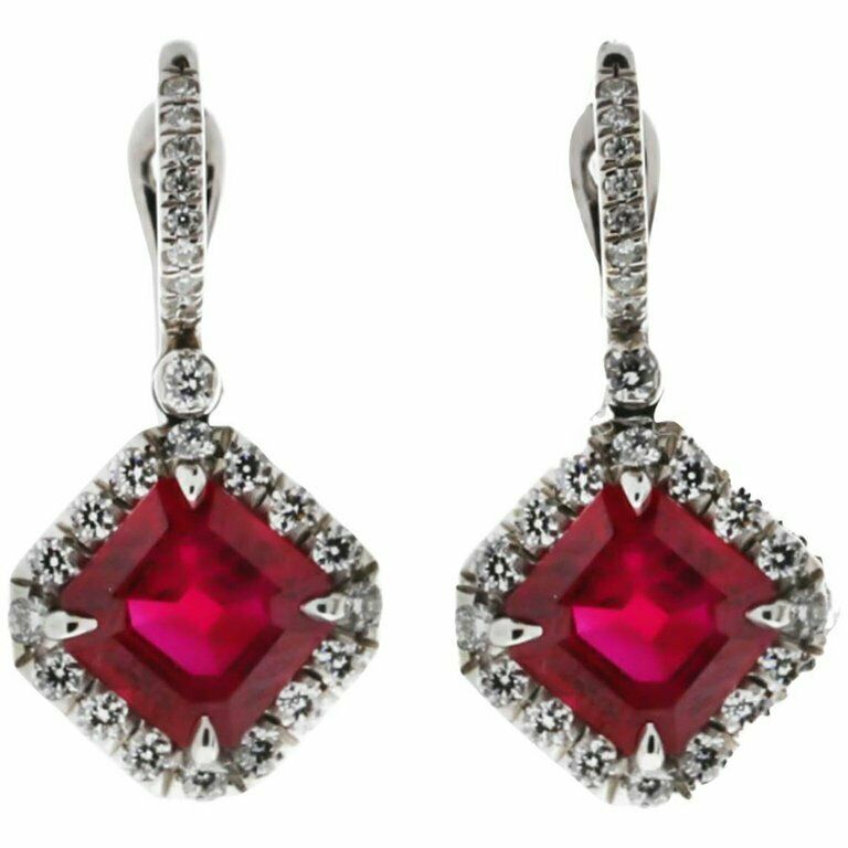 2ct Asscher Cut Pink Ruby Diamond Halo Drop Earrings 14k White Gold Finish