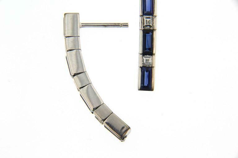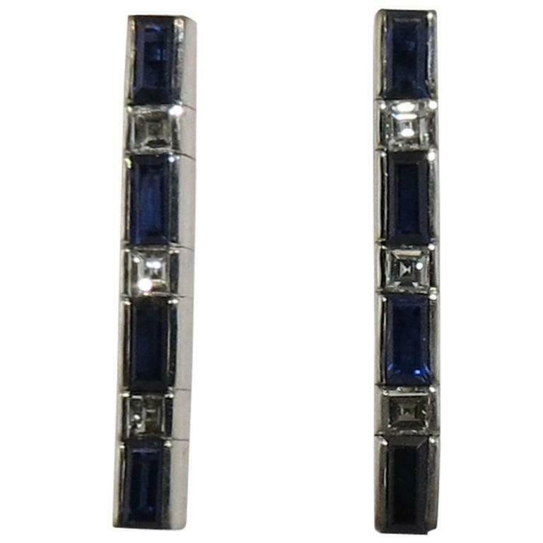 2ct Baguette Cut Blue Sapphire Vertical Bar Drop Earrings 14k White Gold Finish