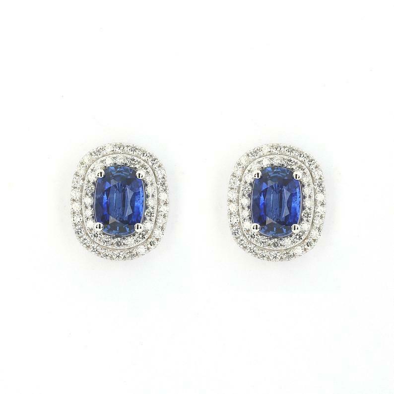 2ct Cushion Cut Blue Sapphire Diamond Dual Halo Stud Earrings 14k White Gold Finish