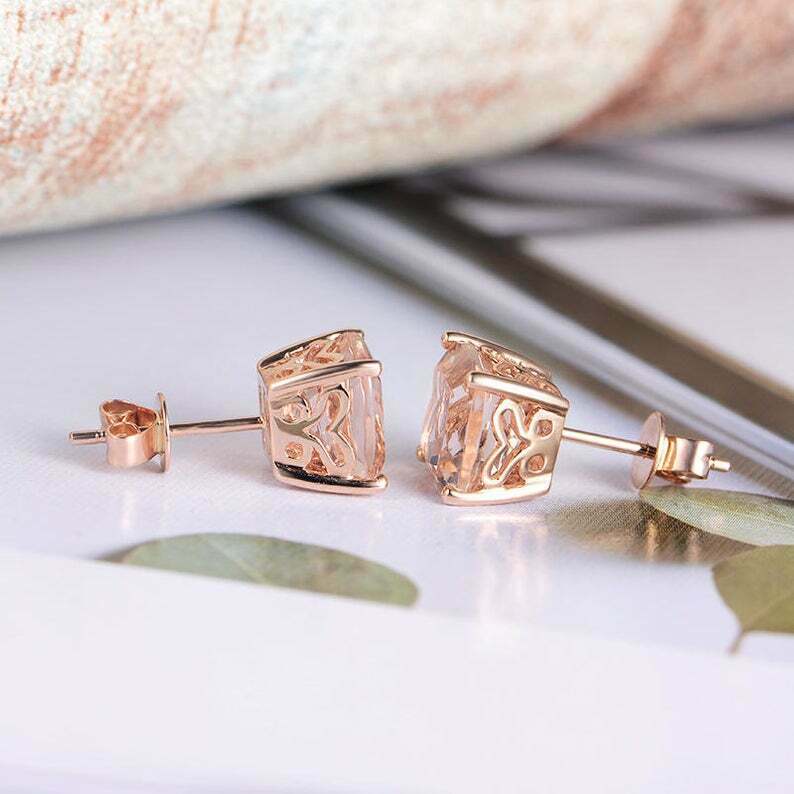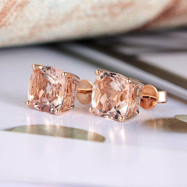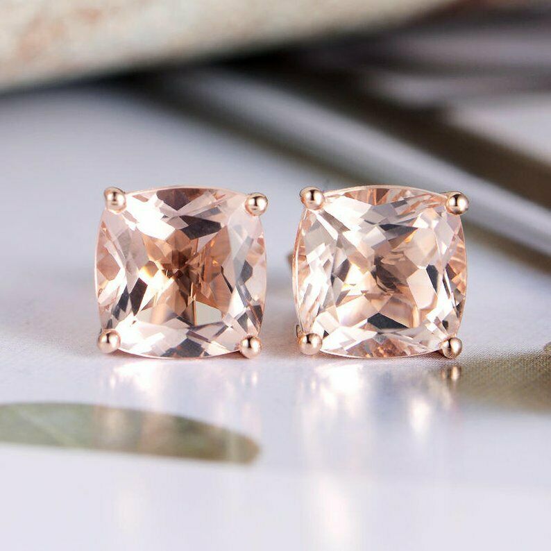 2ct Cushion Cut Peach Morganite Solitaire Stud Earrings 14k Rose Gold Finish