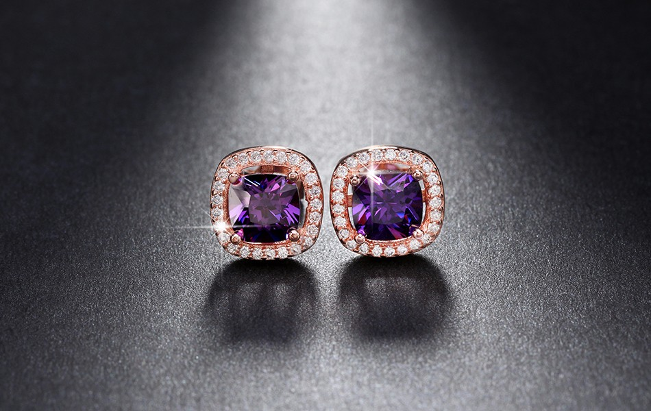2ct Cushion Cut Purple Amethyst Halo Solitaire Stud Earrings 18k Rose Gold Over