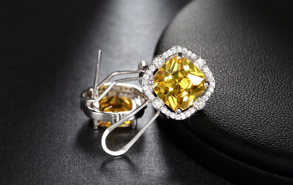 2ct Cushion Cut Yellow Citrine Halo Solitaire Stud Earrings 14k WhiteGold Finish
