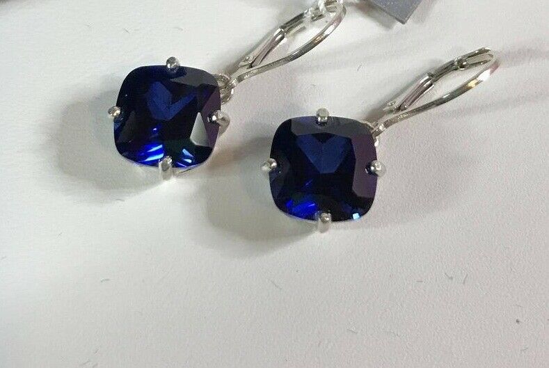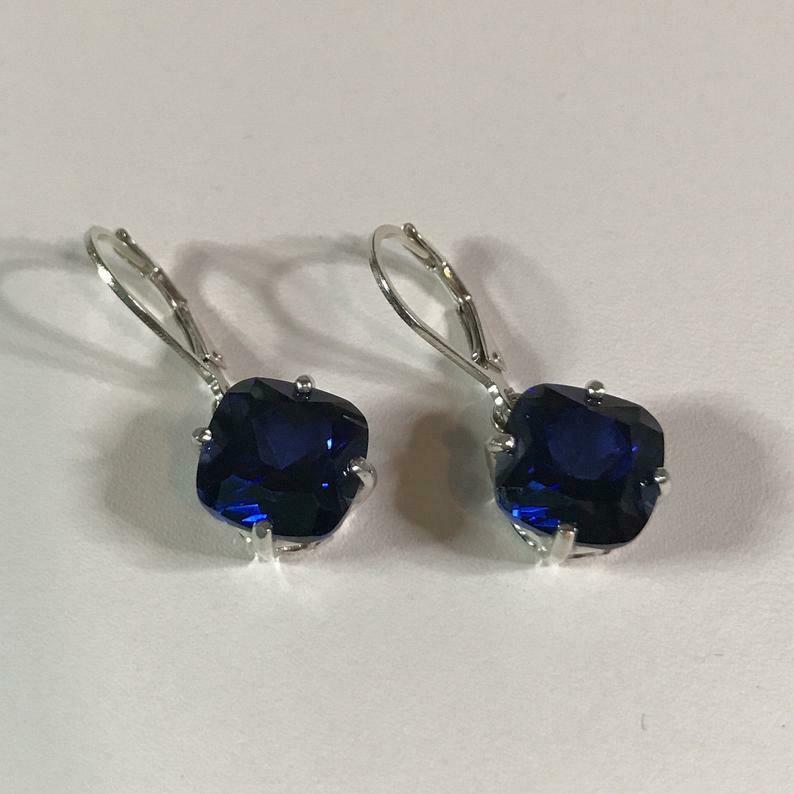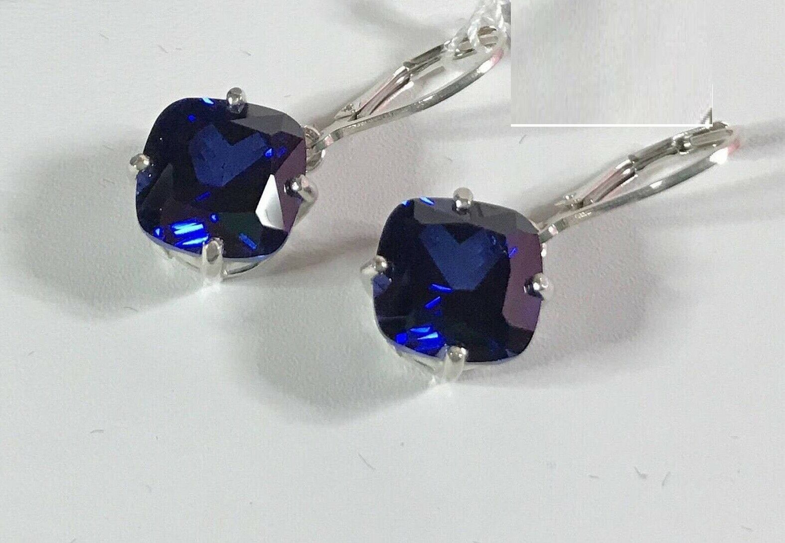 2ct Dangle Earrings Cushion Cut Blue Sapphire Solitaire LeverBack 14k White Gold Over