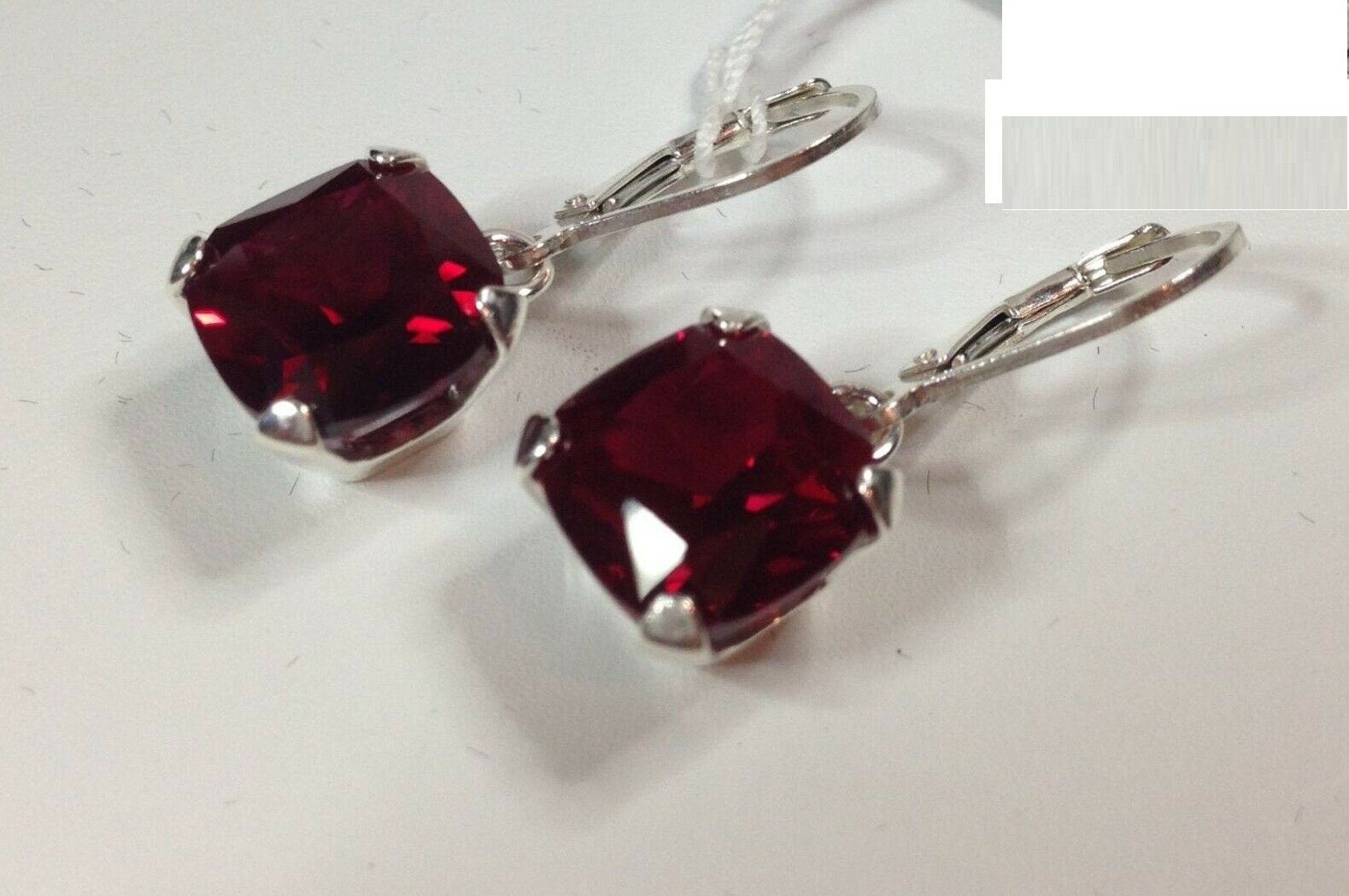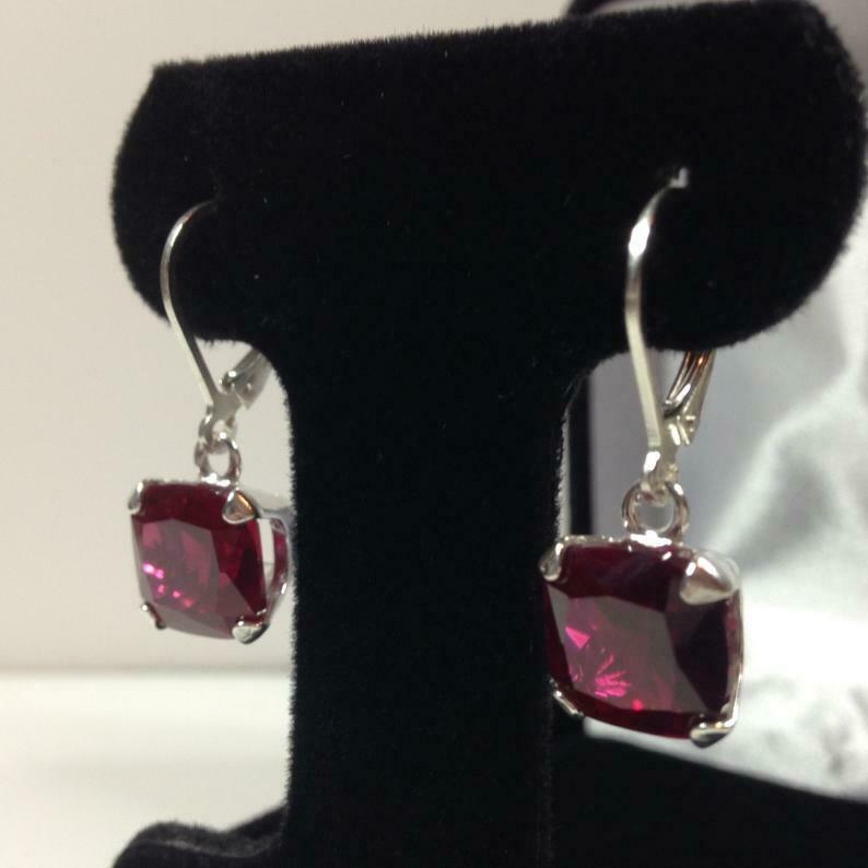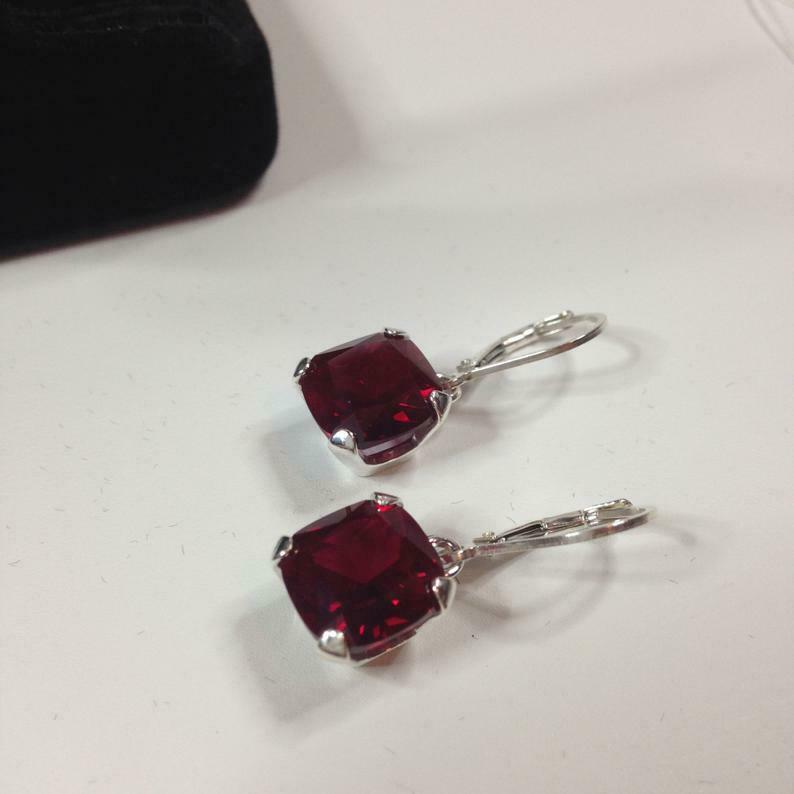 2ct Dangle Earrings Cushion Cut Ruby Solitaire Leverback 14k White Gold Finish