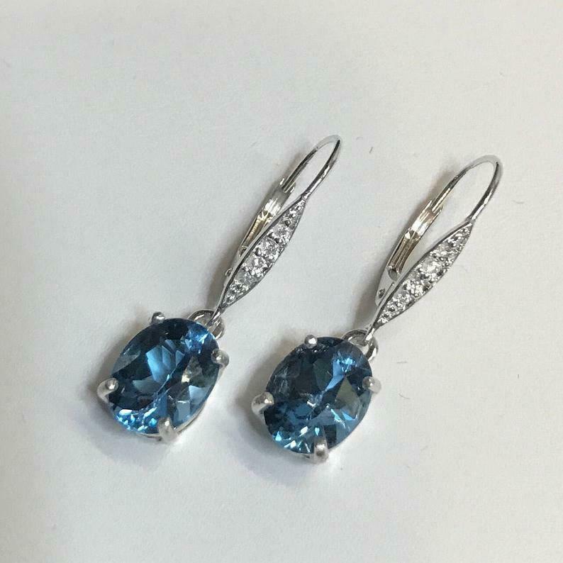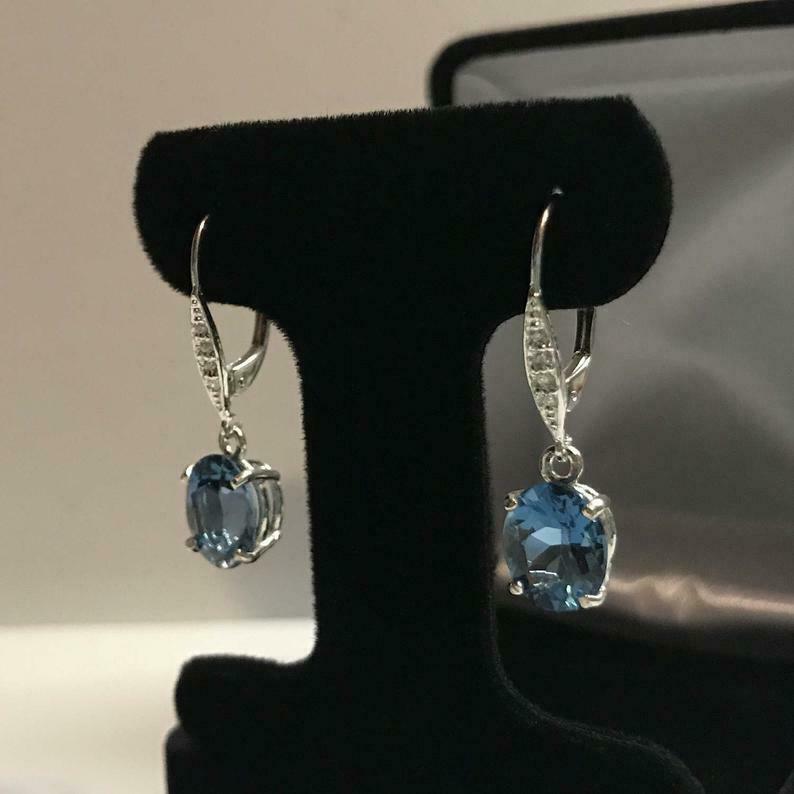 2ct Dangle Earrings Oval London Blue Topaz Diamond LeverBack 14k White Gold Over