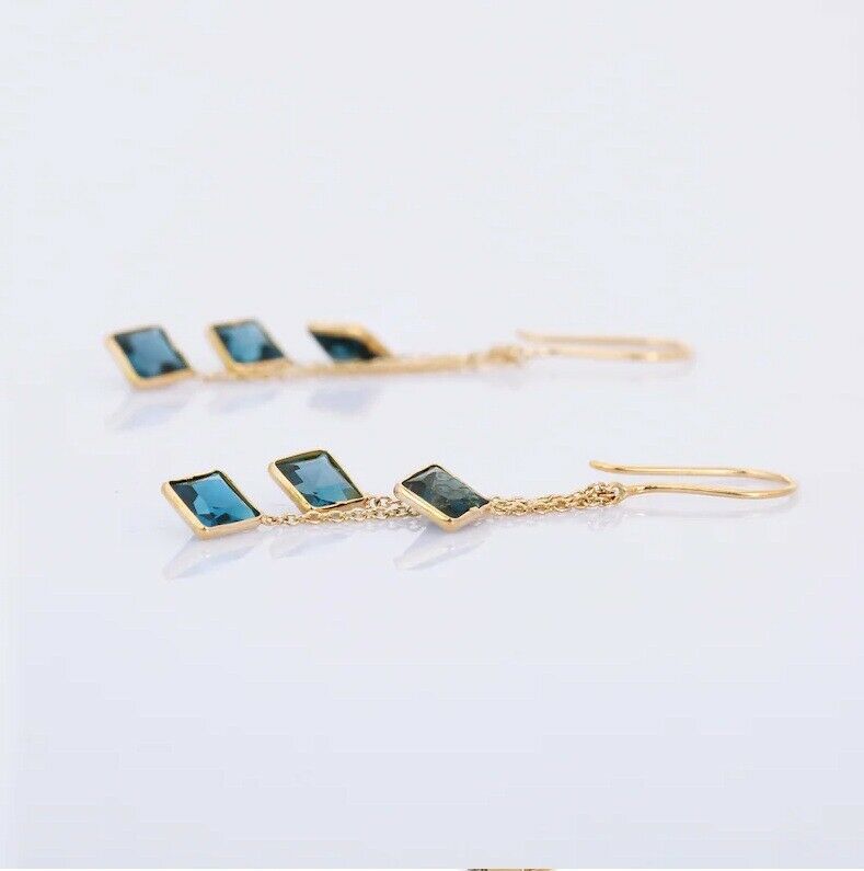 2ct Drop Earrings Cushion Cut London Blue Topaz Dangling Chain 14k Yellow Gold Over