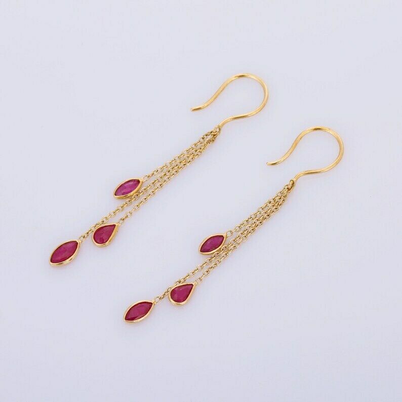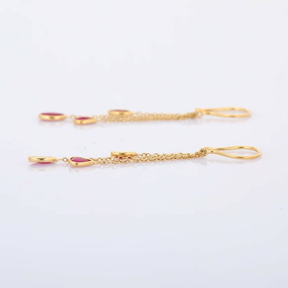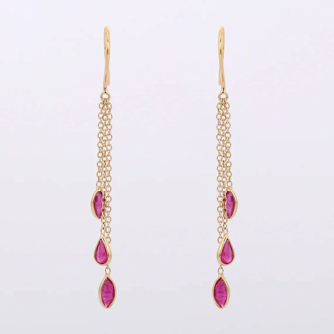 2ct Drop Earrings Marquise Cut Pink Ruby Dangling Chain 14k Yellow Gold Finish