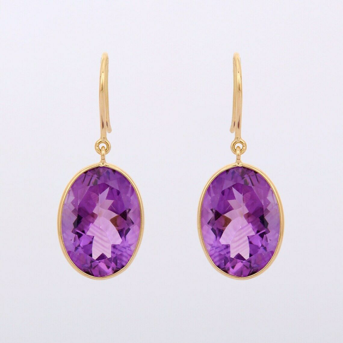 2ct Drop Earrings Oval Cut Amethyst Bezel Set Solitaire 14k Yellow Gold Finish