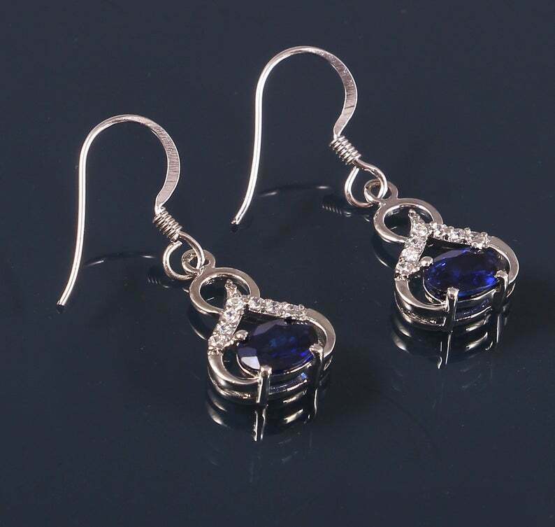 2ct Drop Earrings Oval Cut Blue Sapphire Stylish Partywear 14k White Gold Finish