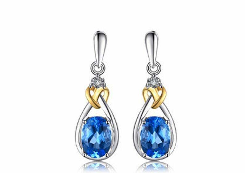 2ct Drop Earrings Oval Cut Blue Topaz Twist Heart 14k White Gold Finish