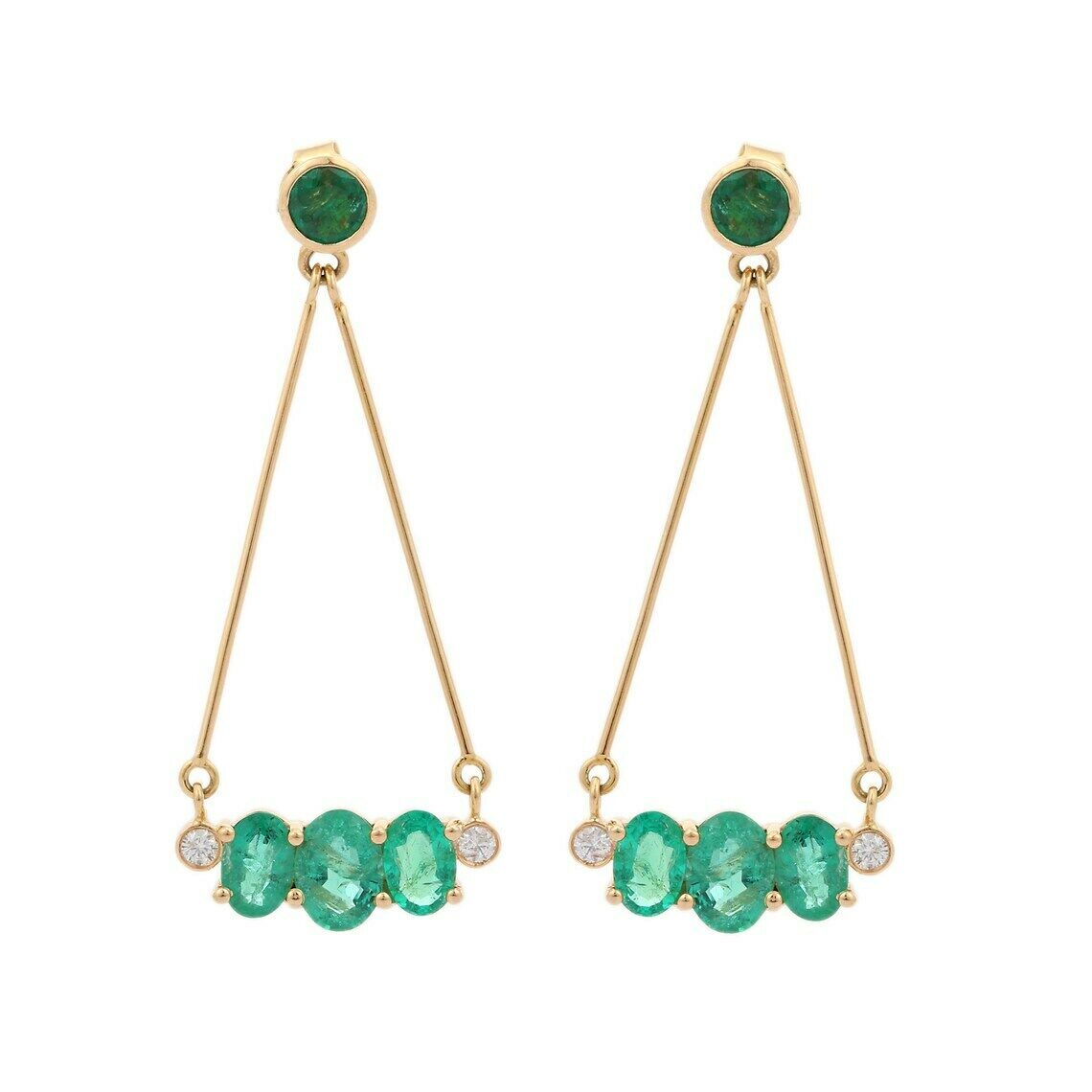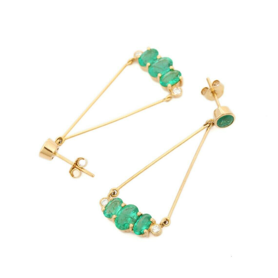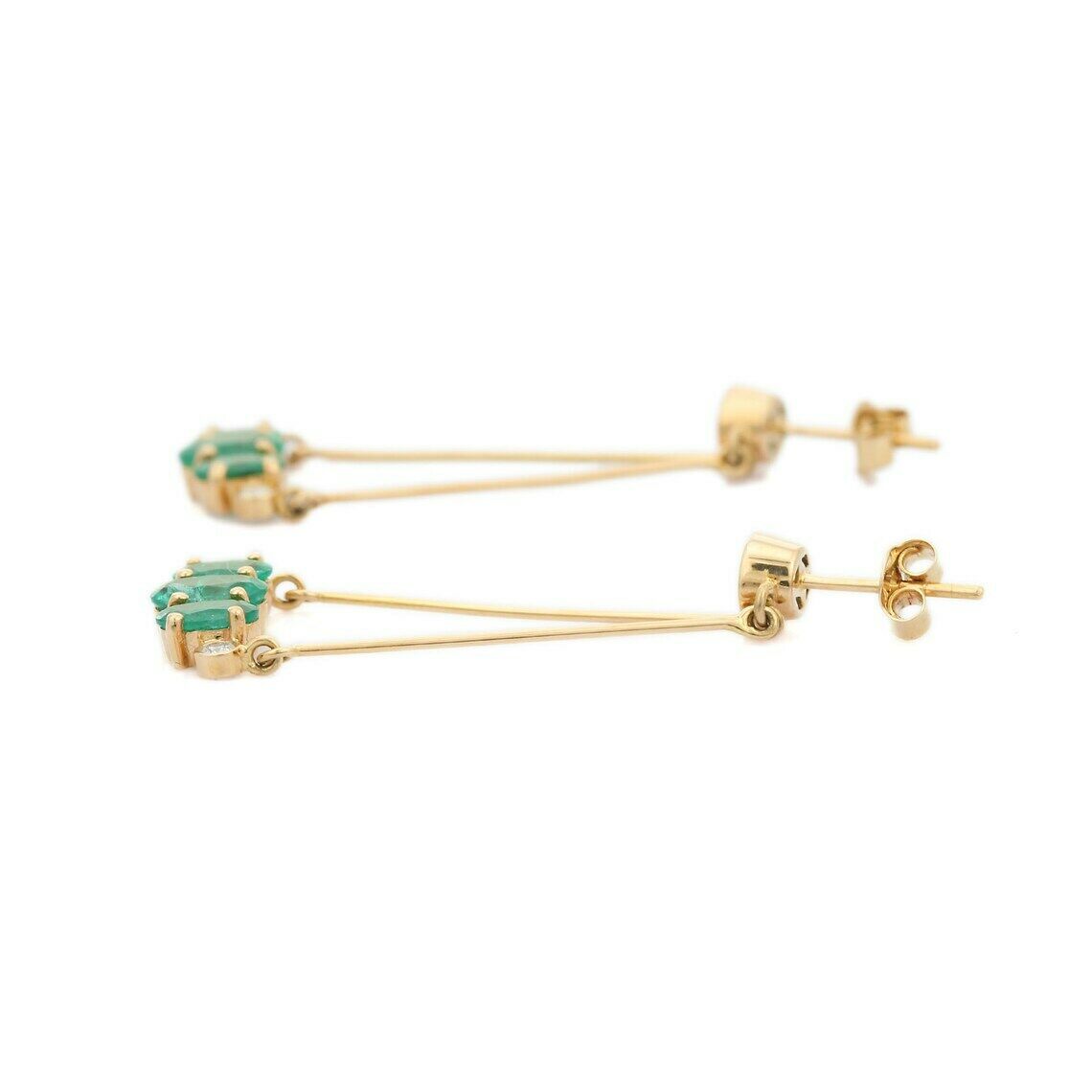 2ct Drop Earrings Oval Cut Green Emerald Dangling 14k Yellow Gold Finish