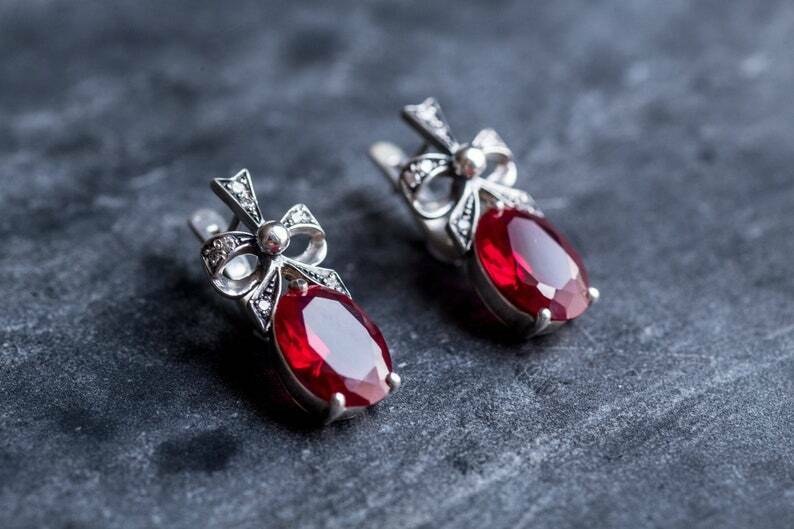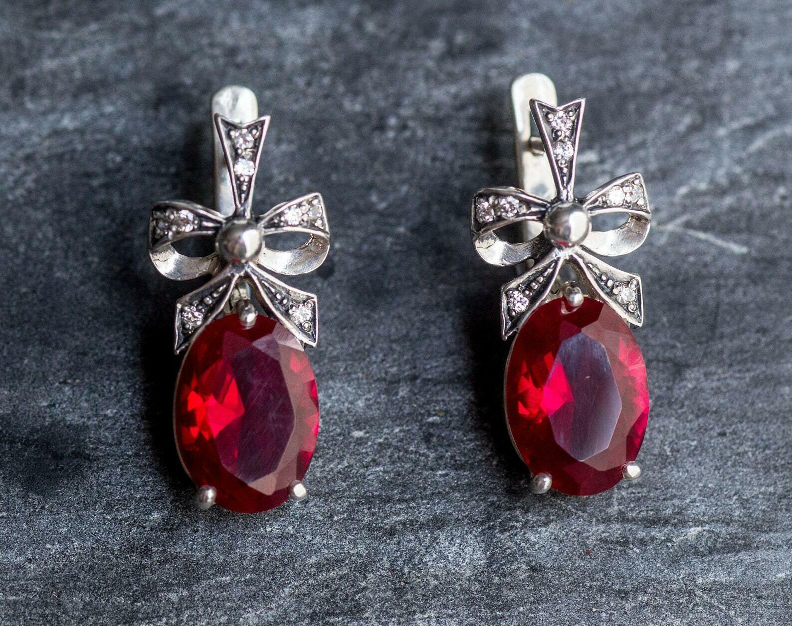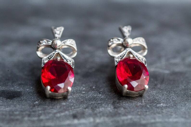 2ct Drop Earrings Oval Cut Pink Ruby Knot Partywear Design 14k White Gold Finish