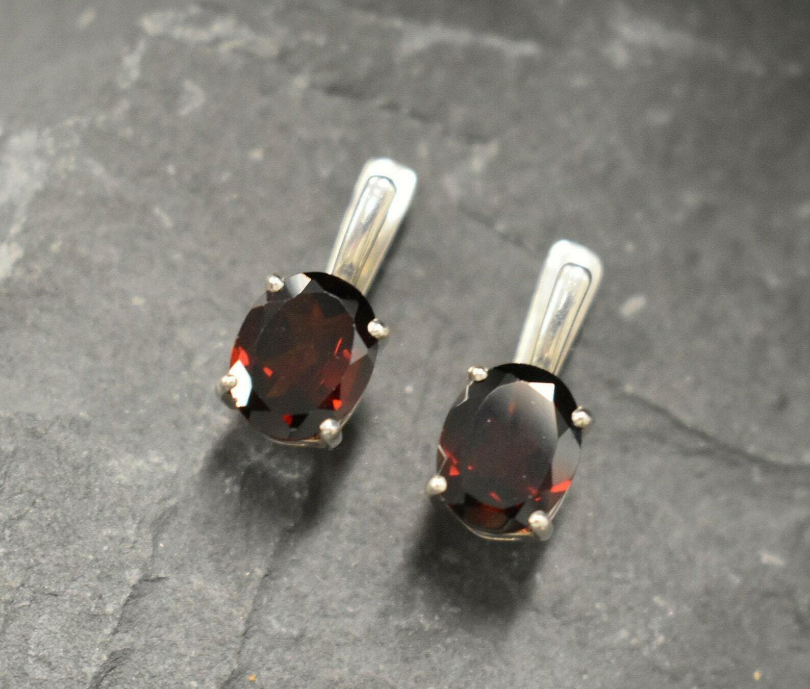 2ct Drop Earrings Oval Cut Red Garnet Solitaire Design 14k White Gold Finish