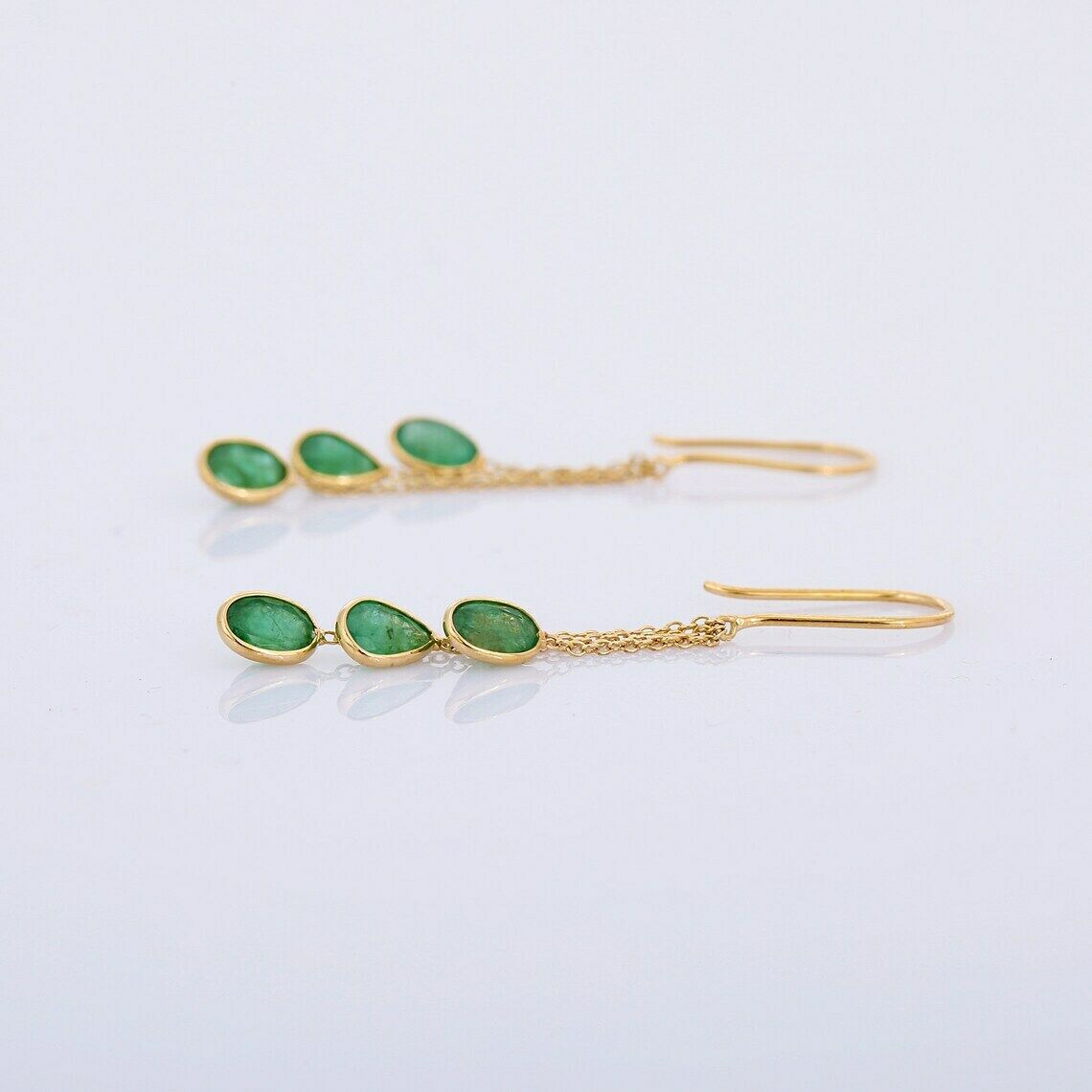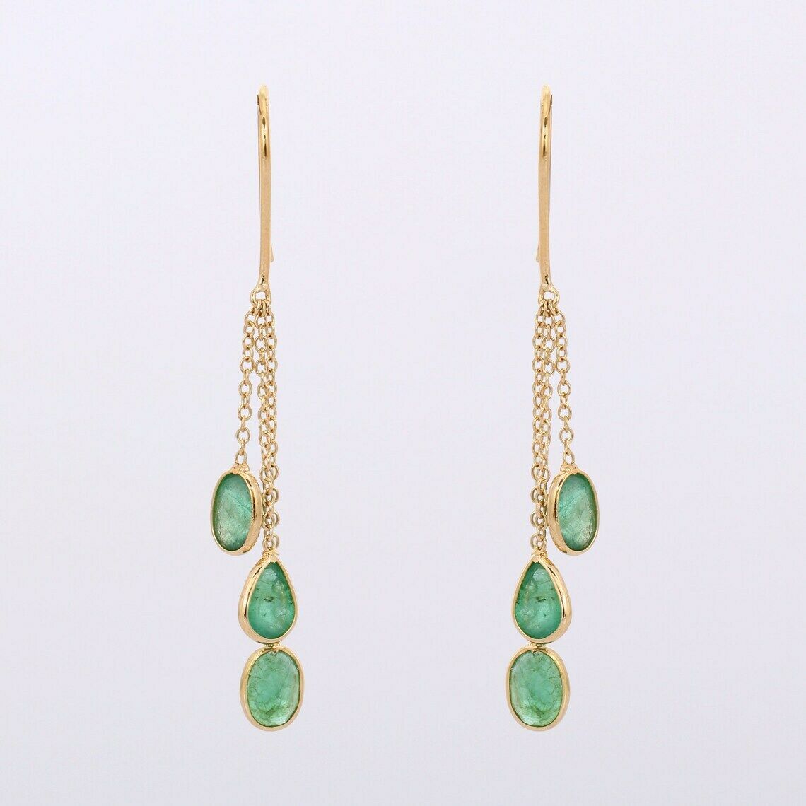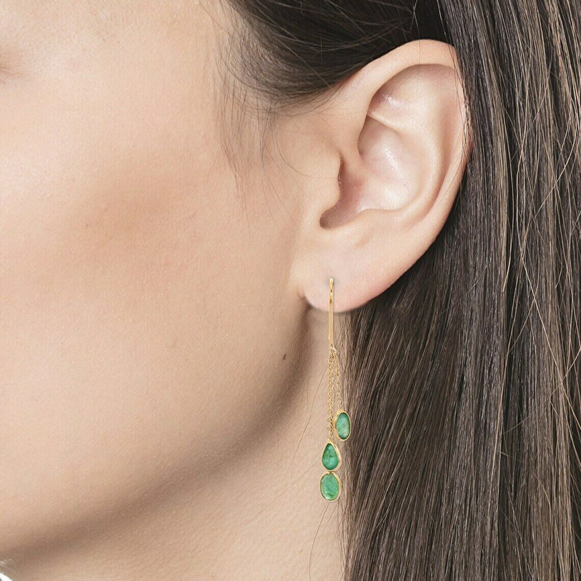 2ct Drop Earrings Oval Pear Cut Green Emerald Dangling 14k Yellow Gold Finish
