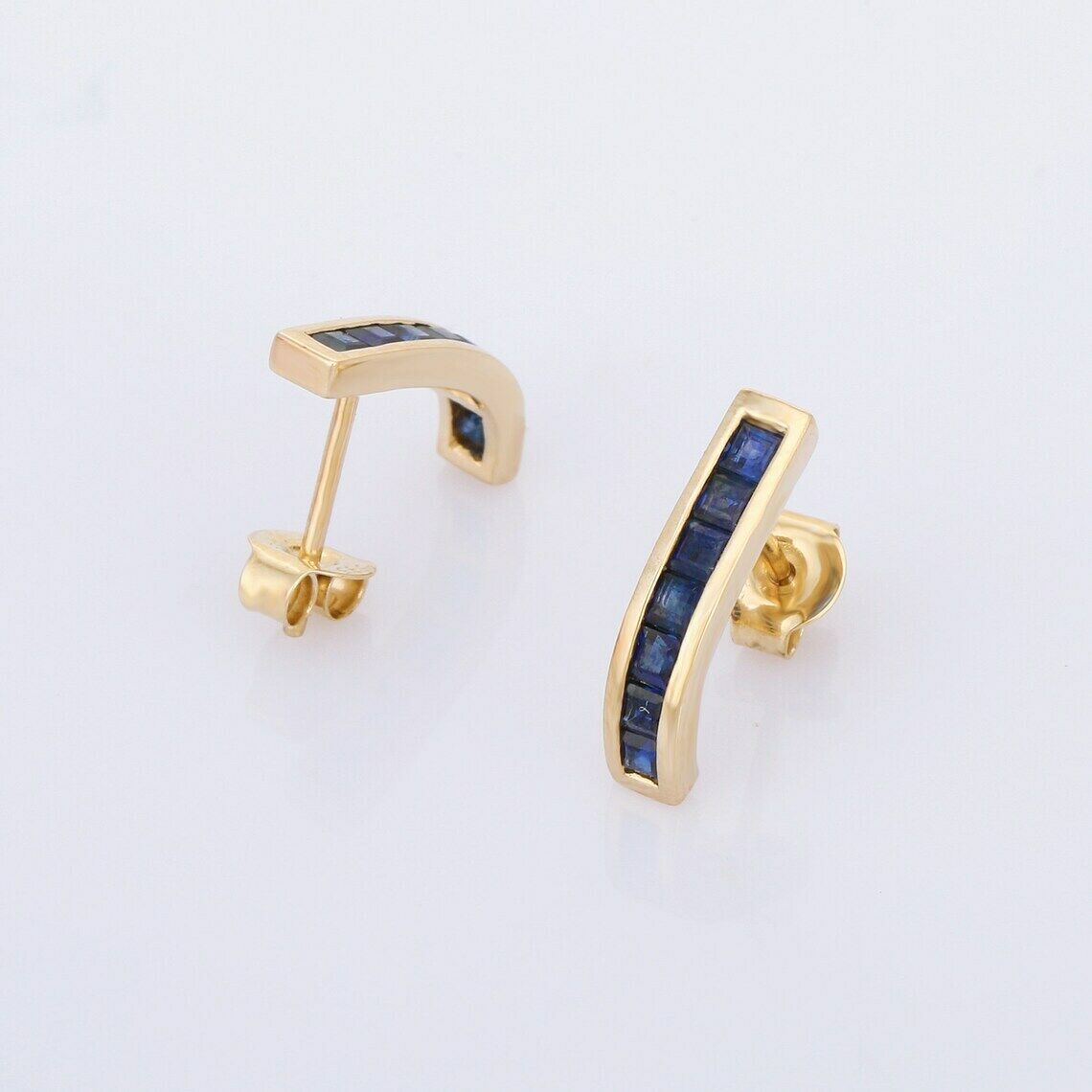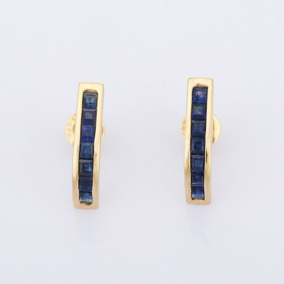 2ct Drop Earrings Princess Cut Blue Sapphire Vertical Bar 14k Yellow Gold Finish